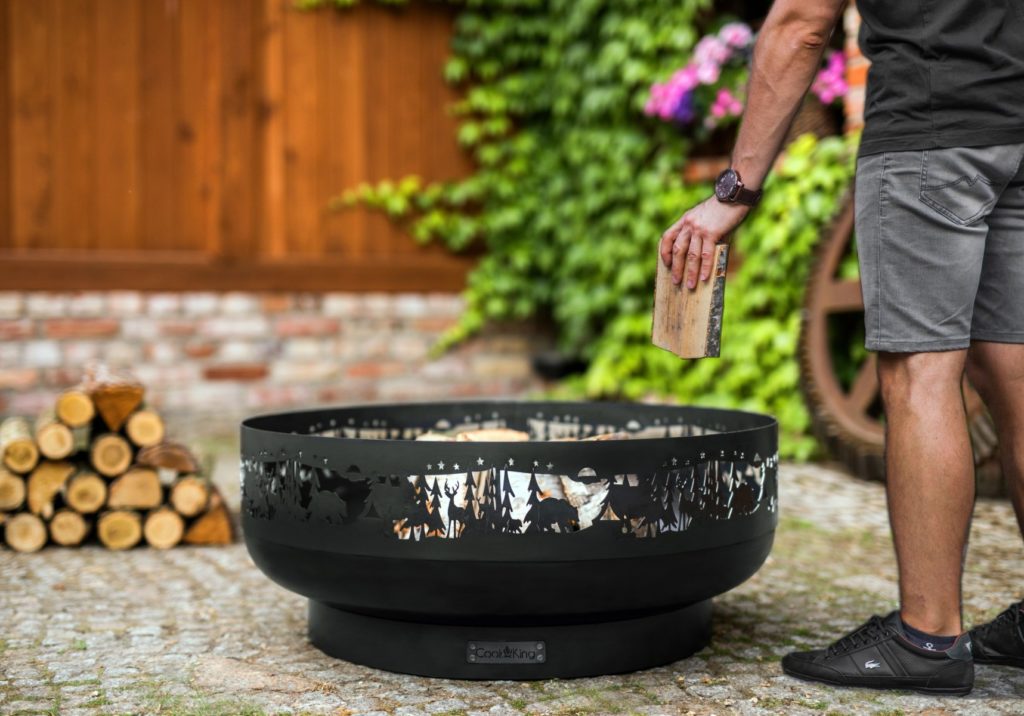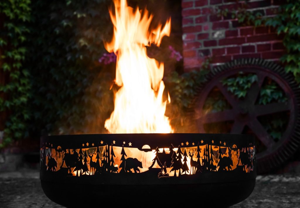 De vuurschaal heeft rondom een uitgelaserd patroon. Steek het vuur aan en geniet van dit unieke beeld. Het patroon laat een bos zien waarbij je dieren en natuur kunt zien. Met een mooi vuurtje zie je het patroon goed en kun je ook de kleinere details opmerken.