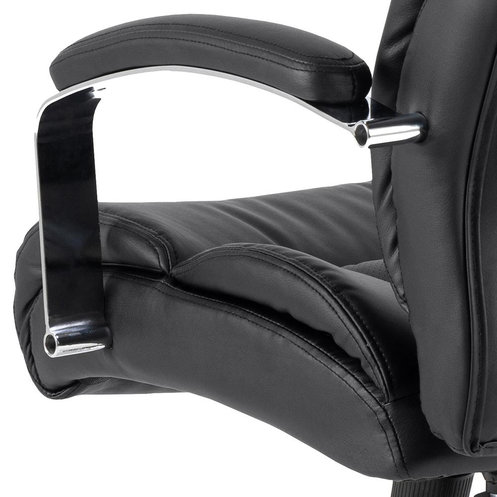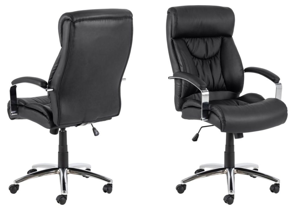 Stylish Benson bureaustoel met armleuningen en verstelbare hoogte, 5-sterren chroomstalen basis, zachte remwielen, draaibaar en kantelbaar. PU zwart DM23 FR voor comfortabel zitten.