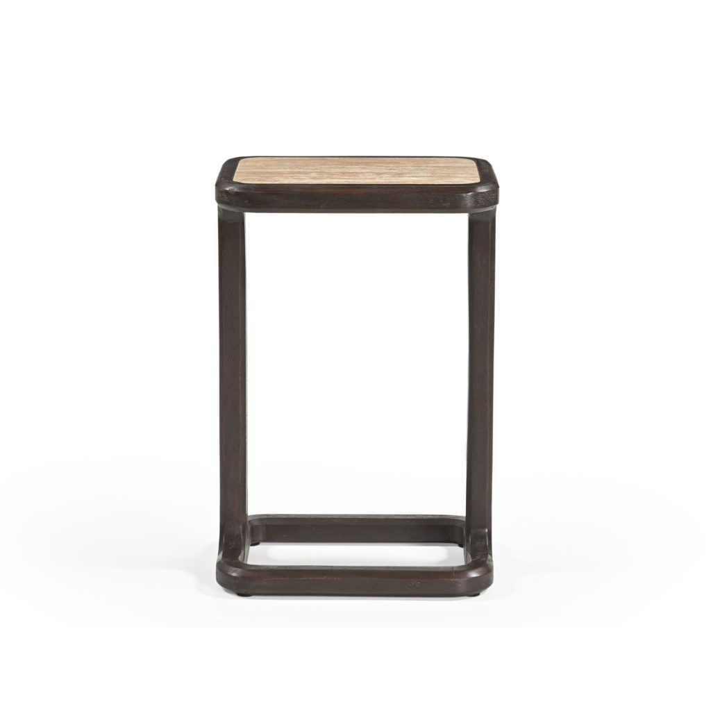 Bijzettafel Arvid: set van twee, handgemaakt van elegant bruin mangohout met travertin bladen. Rechthoekig met open onderstel voor een luchtige uitstraling. Robuuste, duurzame kwaliteit, ideaal voor dagelijks gebruik. Gemakkelijk te monteren. Afmetingen per tafel: 39×29×58 cm.