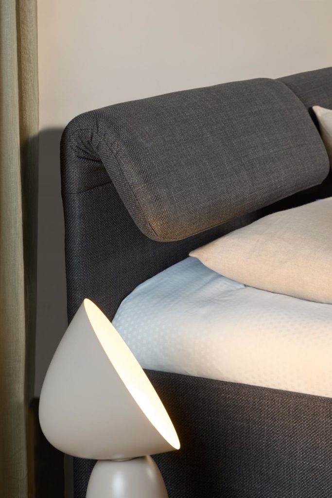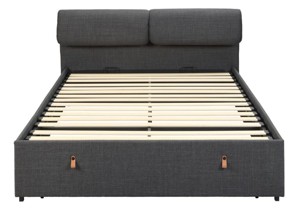 Stijlvol bedframe met verstelbaar hoofdsteun, verborgen opbergruimte en lift systeem. Gestoffeerd in donkergrijs voor een verfijnde uitstraling. Perfect voor een moderne slaapkamer. Eenvoudig in elkaar te zetten."