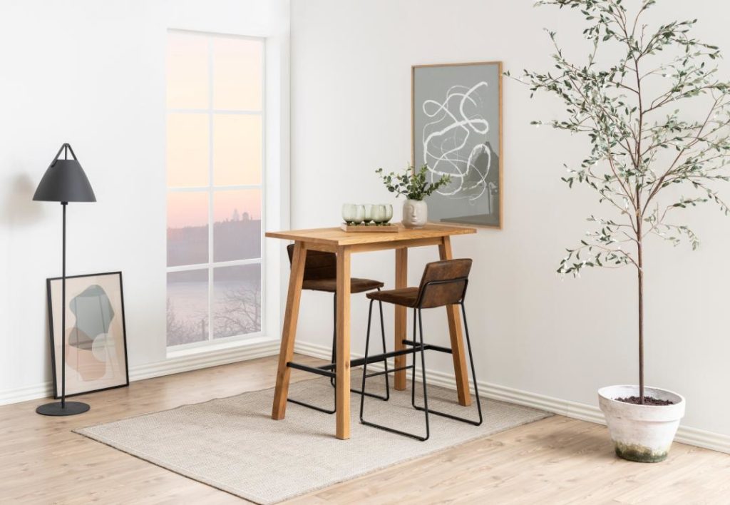 Deze robuuste en hoekige bartafel is een perfecte aanvulling voor een informeel diner in huis. Gemaakt van wild eikenfineer met een geoliede afwerking, biedt hij comfortabel plaats aan 4 personen. De zwarte stalen voetensteun draagt bij aan het comfort. De montage is snel en het ontwerp is uitgevoerd in natuurlijke kleuren. Ideaal voor Nederlandse huizen!