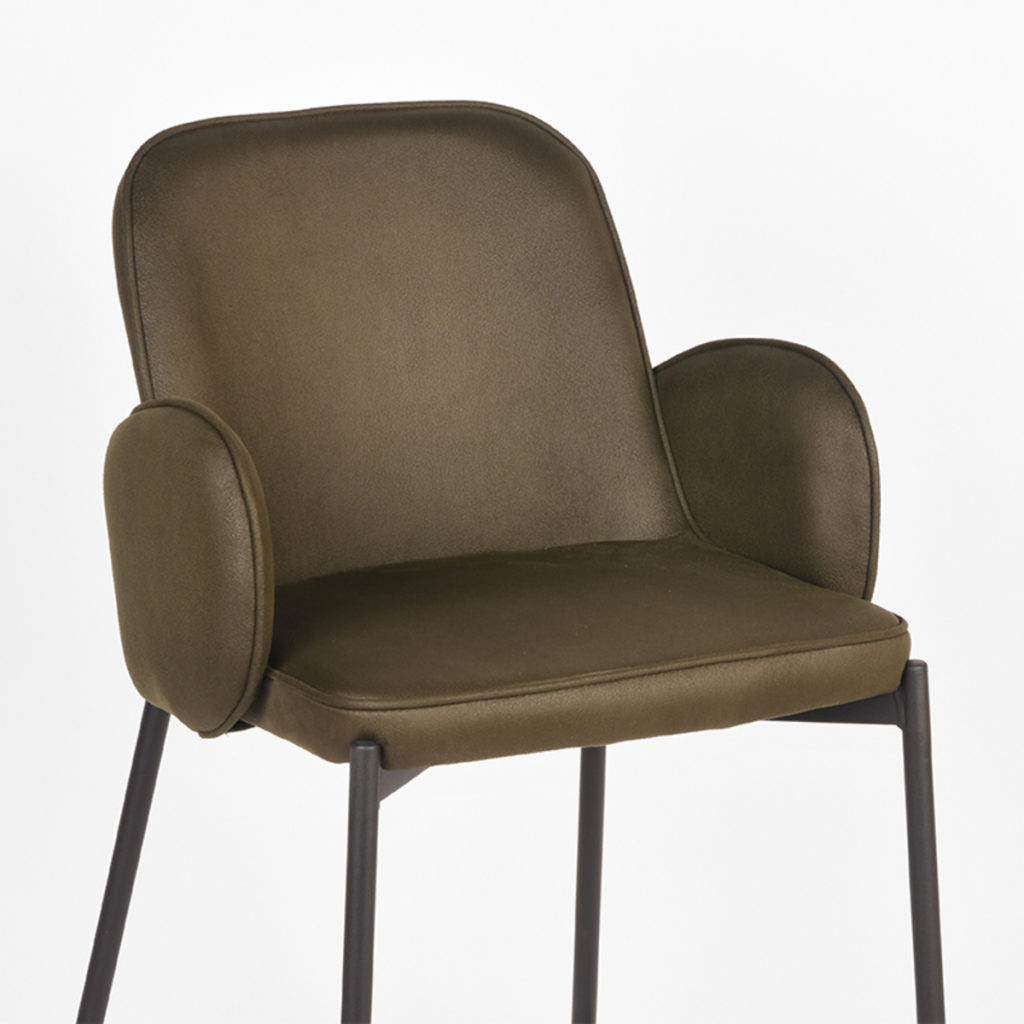 Barkruk Jari van LABEL51, uitgevoerd in army microvezel heeft wel een heel indrukwekkend design met zijn prachtige ronde vormen en armleuningen die achter de rugleuning doorlopen. Jari is het perfecte voorbeeld van design met maximaal comfort.