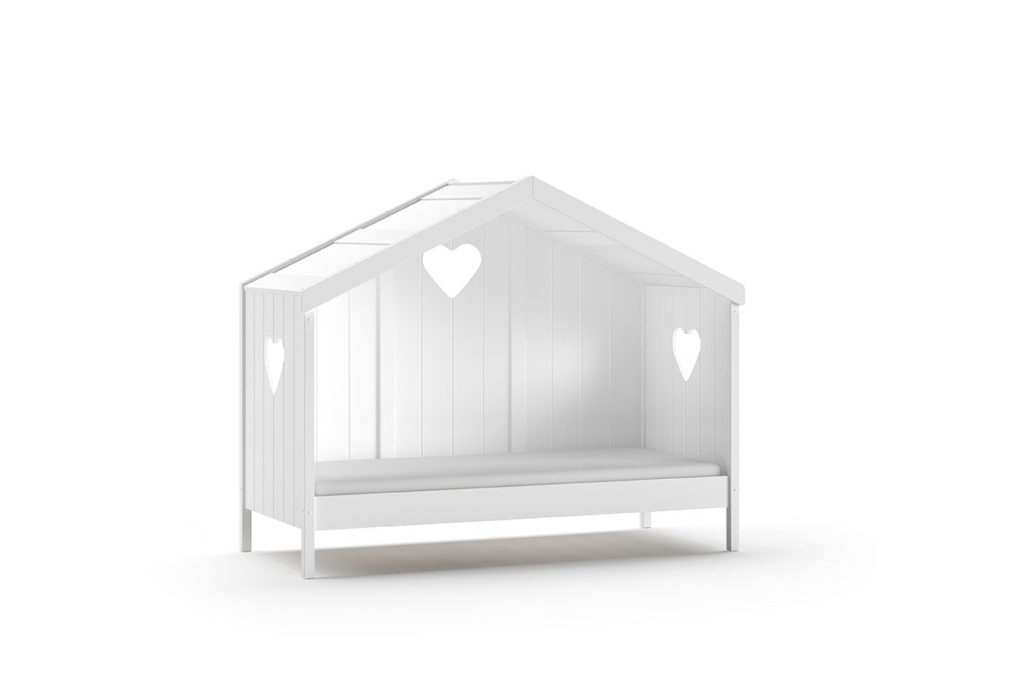 Het AMORI huisbed is een wit bed van 90x200cm. Dit bed heeft een romantische uitstraling, mede dankzij het hart in het hoofdbord en voeteinde en de sierlijke afwerking. Bij dit bed is de lattenbodem inbegrepen. Het witte AMORI rolbed kan gebruikt worden als een extra slaapplaats voor logees of als opbergruimte. De harten en de sierlijke afwerking zorgen voor de romantische look. De uitvalbeveiliging zorgt ervoor dat het kind niet kan vallen.