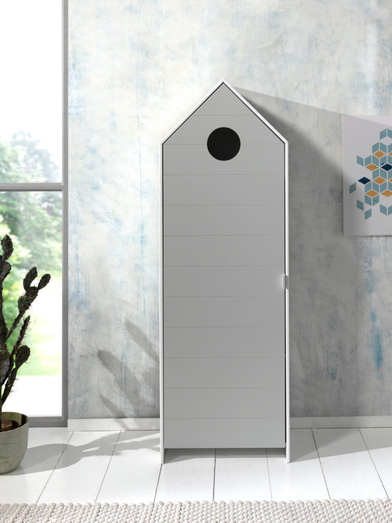 De kastjes uit de CASAMI collectie in de vorm van een strandhuisje geven meteen een speelse en kleurrijke toets aan elke kinderkamer. U kan ze combineren met verschillende artikels uit onze andere collecties. De kasten met deur zijn beschikbaar in 4 pastelkleuren; wit, lichtroze, mintgroen en grijs en beschikken over 3 legplanken en een kledinghanger. De open kast in wit beschikt over 3 legplanken die naar eigen keuze kunnen worden ingedeeld. Er is dus voldoende opbergruimte voorzien voor kledij, speelgoed, boeken, beddengoed,...