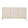 Het Madison Sand dressoir is gemaakt van licht gezandstraald mangohout met een verfijnde sand finish. Het bronzen metalen frame voegt een elegant accent toe. Drie deuren met verticaal lattenpatroon geven een moderne en tijdloze uitstraling. Afmetingen: 165cm x 45cm x 85cm. Onderhoud: Afnemen met een lichtvochtige doek.
