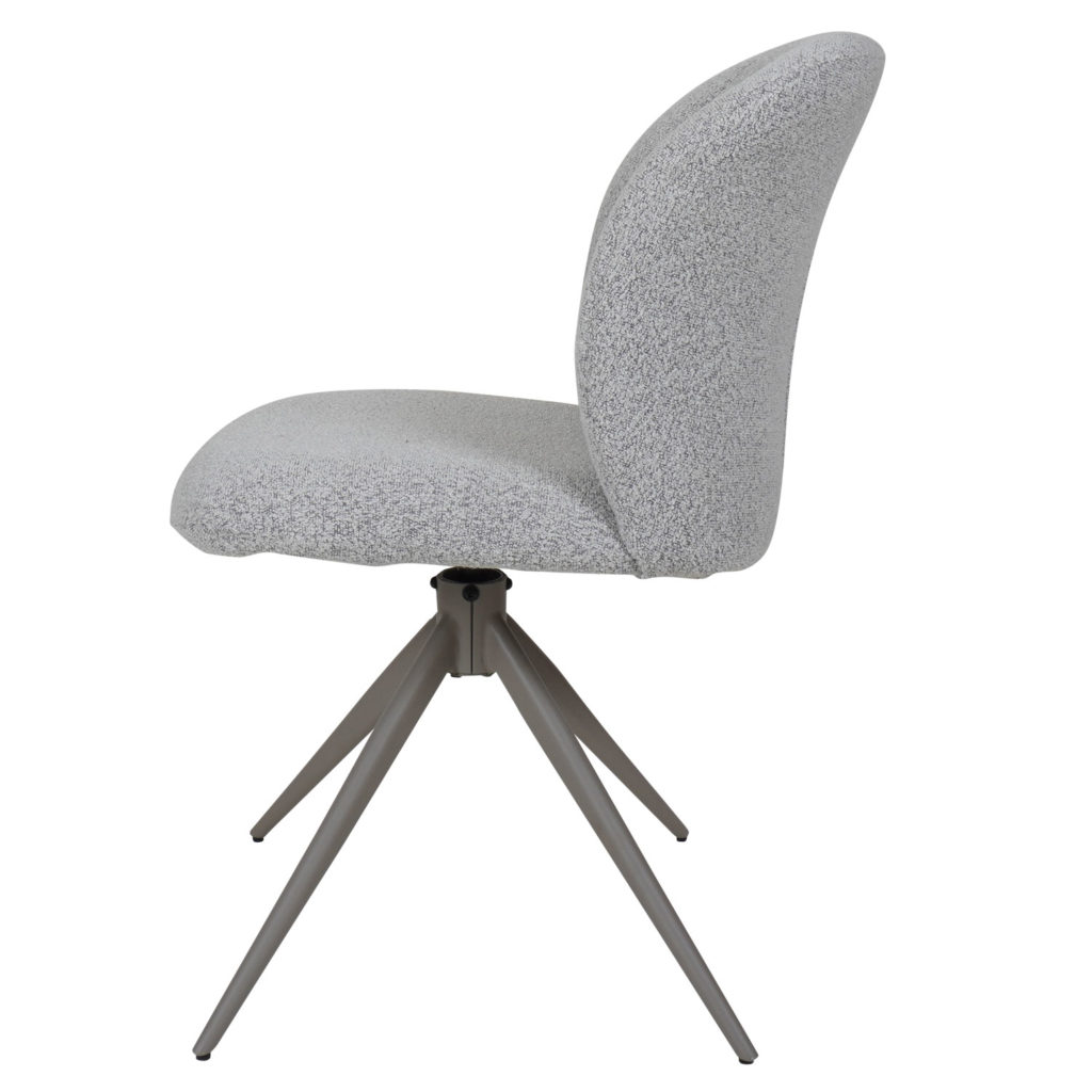 Met eetkamerstoel Cosmo zit je extra lekker aan de eettafel! Met het unieke draaistoelmechanisme van 360° graden kun je moeiteloos bewegen terwijl je dineert of gezellig bij elkaar zit. Cosmo heeft een tijdloze uitstraling door de ronde vormen en het eenvoudige design. Daardoor past deze eetkamerstoel mooi in diverse interieurs. Bekleed met een zachte bouclé stof, straalt deze stoel warmte en luxe uit. Waar de meeste eetkamerstoelen een zwart onderstel hebben, heeft Cosmo een onderstel in de kleur taupe. Dit maakt de stoel dan ook zo uniek! De eetkamerstoel is beschikbaar in de kleuren naturel, champagne, terra en bruin.