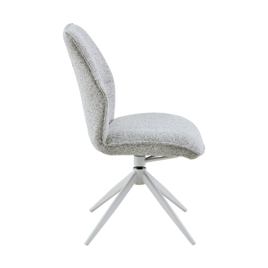 Eetkamerstoel Hera: moderne, comfortabele draaistoel (360°) met zachte zitting en stevig metalen onderstel. Verkrijgbaar met of zonder armleuningen. Zelfmontage. Onderhoud eenvoudig: afnemen met een lichtvochtige doek. Bekleding: Puente 80. Stijlvol en praktisch voor dagelijks gebruik.