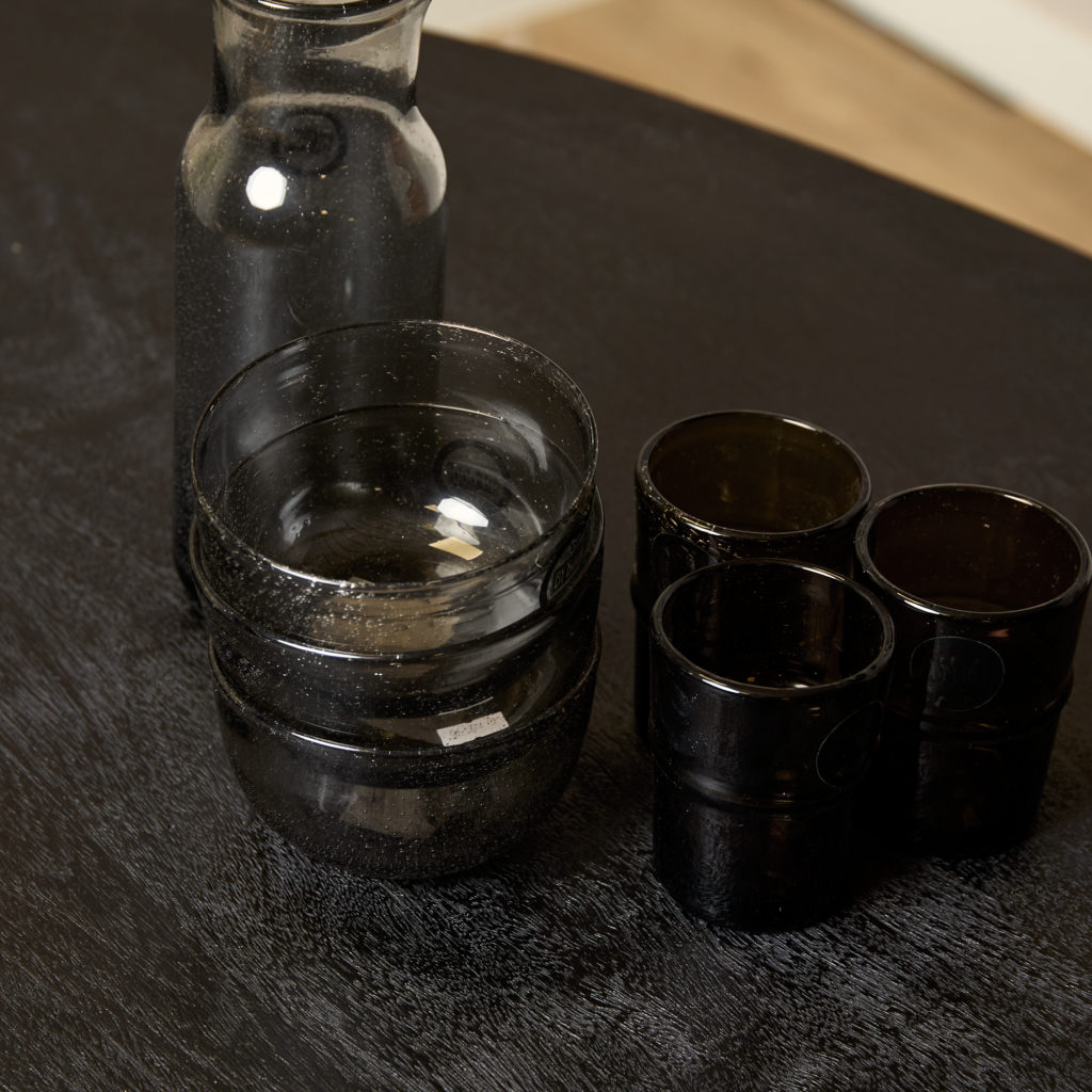 Ovale eetkamertafel Brandy Black heeft een tafelblad van massief mango hout en een zwart gelakte metalen matrixpoot. Het blad is afgewerkt met een zwarte finish en is licht gezandstraald.