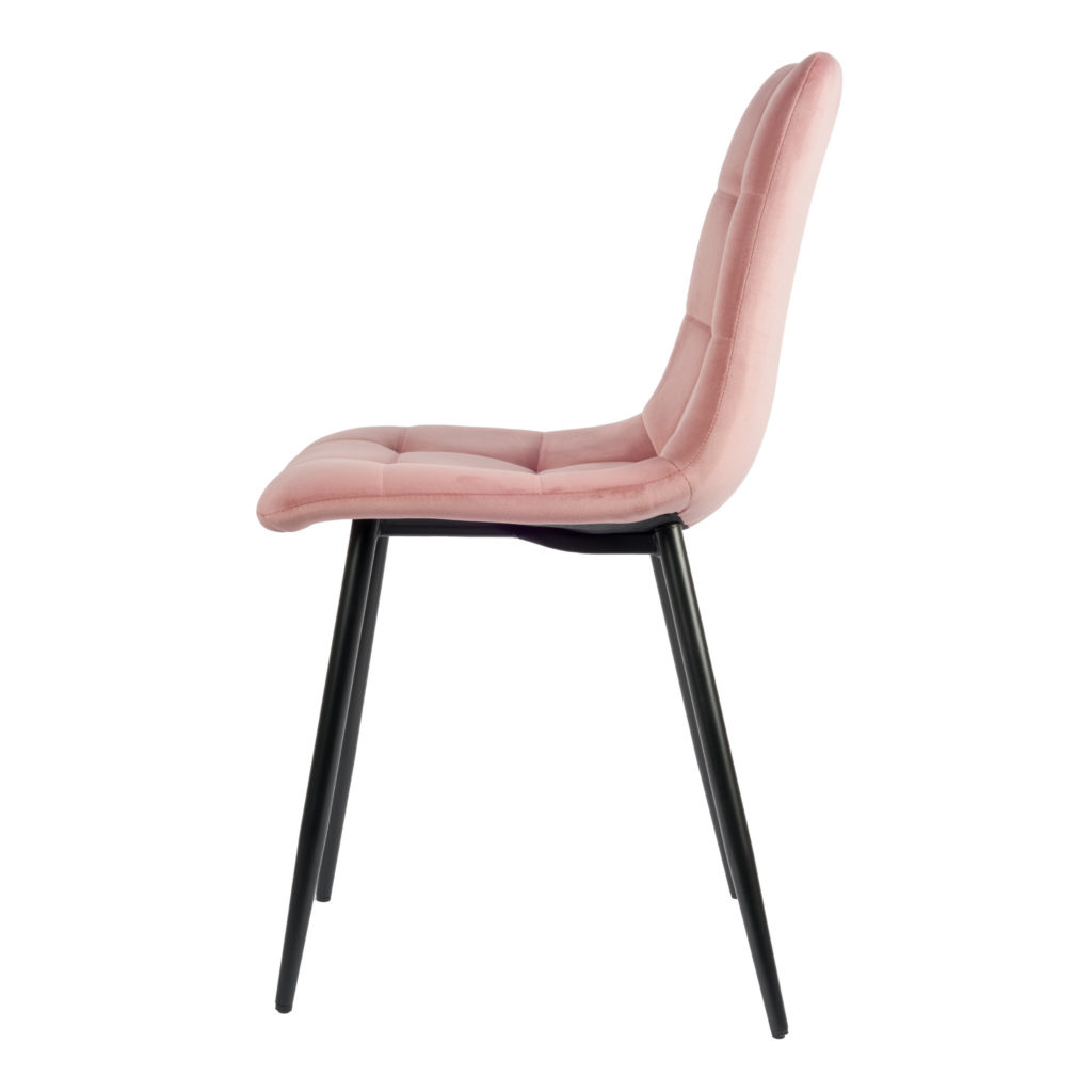 De eetkamerstoel Elise is een moderne strakke stoel met een hippe velvet stof. De vierkante kussens typeren het indrukwekkende design van de Elise. De poten zijn elegant en werden afgewerkt met zwarte poederlak. Dit model is geschikt voor zowel een landelijk als een modern interieur.