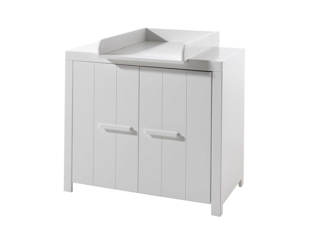 Deze commode uit de ERIK-collectie combineert grenen en MDF, volledig witgelakt. Voorzien van 2 deuren met 1 legplank. Van hoogwaardige kwaliteit en stijlvol ontwerp voor de babykamer. Prijs op aanvraag.