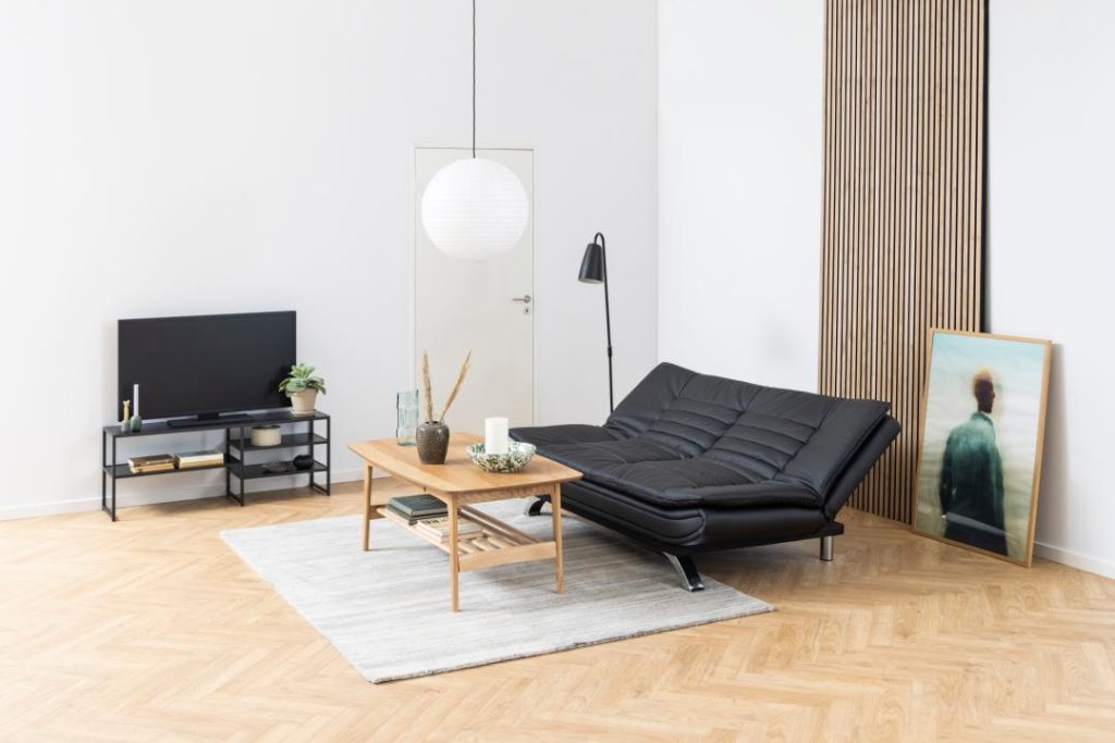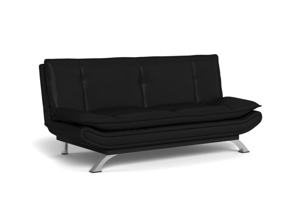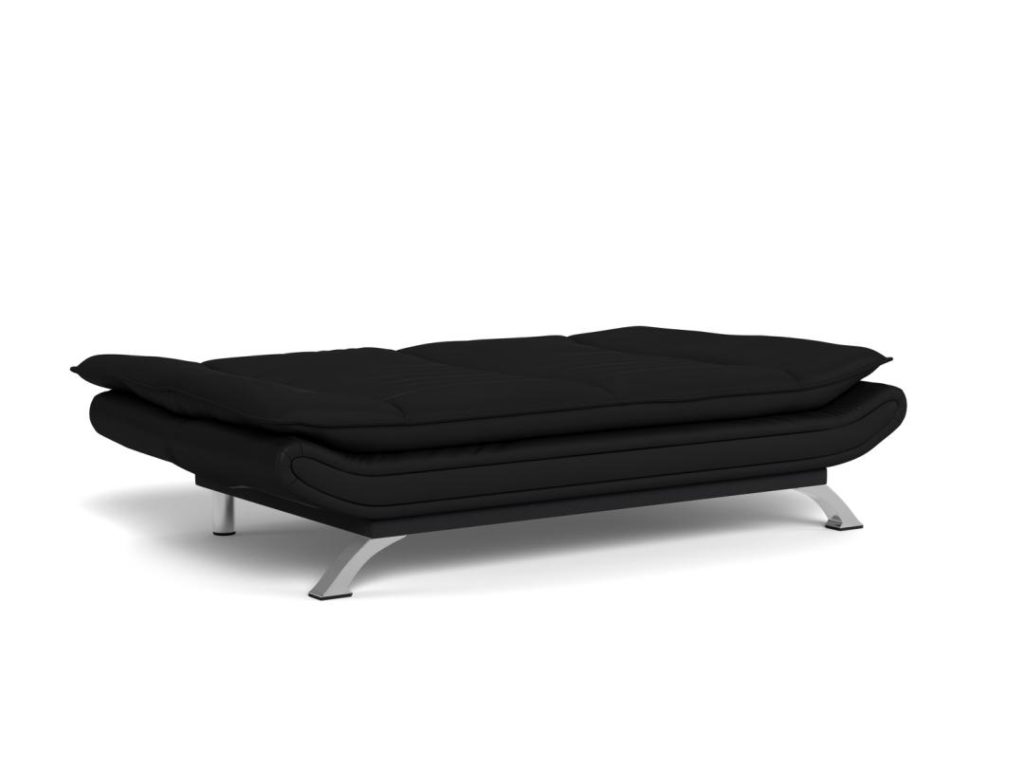 Deze moderne zwarte slaapbank biedt functionaliteit voor kleine ruimtes. Het click-clack mechanisme maakt 3 posities mogelijk. Gestoffeerd in nep leer met stevige chromen stalen poten, het voegt een gezellige touch toe aan elke kamer. Gemakkelijk te monteren.