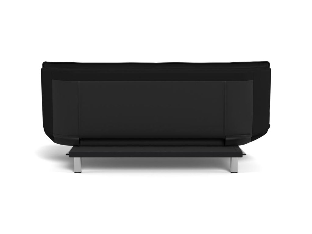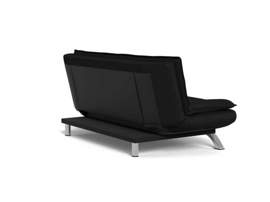 Luxe Faith slaapbank in stijlvol PU zwart met chromen stalen onderstel. Met handige click & clack mechanisme en horizontale stiksels. Afmetingen: 196x98x91 cm.