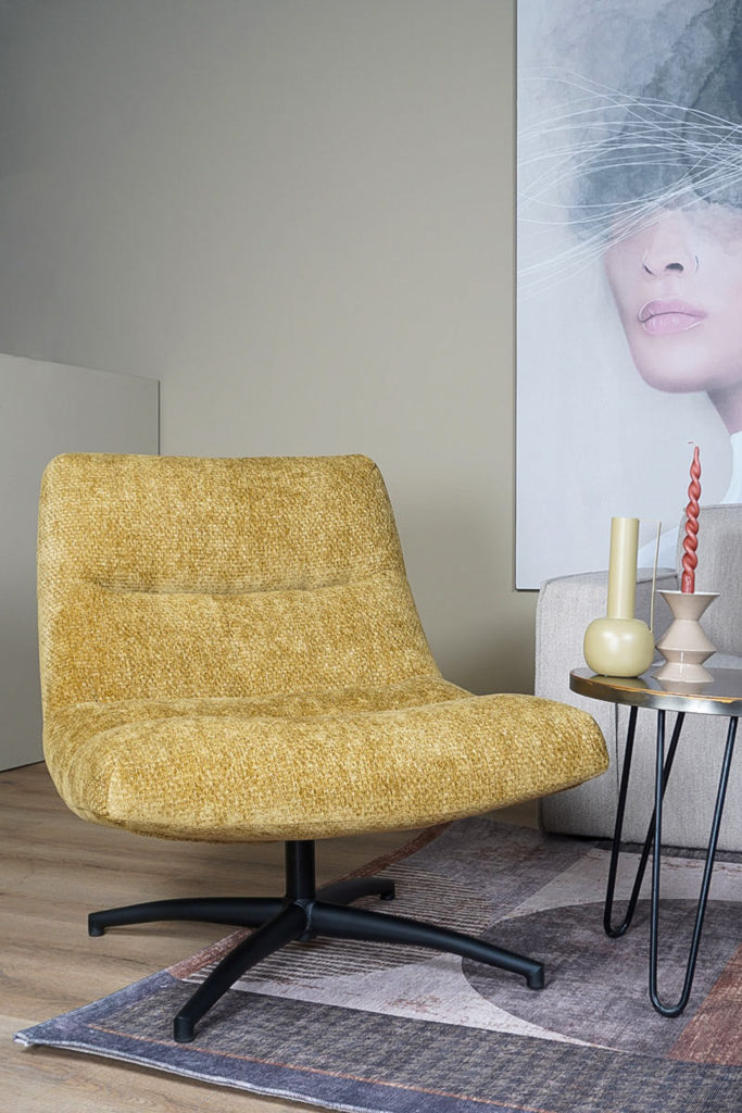 Fauteuil Quinn combineert een strak design met ultiem comfort. De bekleding in de kleur Mustard zorgt voor die extra vrolijkheid in huis. De blikvanger van het interieur! Combineer met verschillende kleuren of laat fauteuil Quinn uit je interieur springen in deze mosterdgele kleur. Daarnaast is Fauteuil Quinn uiteraard een heerlijke stoel met een 360° graden draaifunctie om in te relaxen! De afmeting van Fauteuil Quinn is 93 x 77 x 88 cm. Fauteuil Quinn is ook beschikbaar in de kleur Clay.