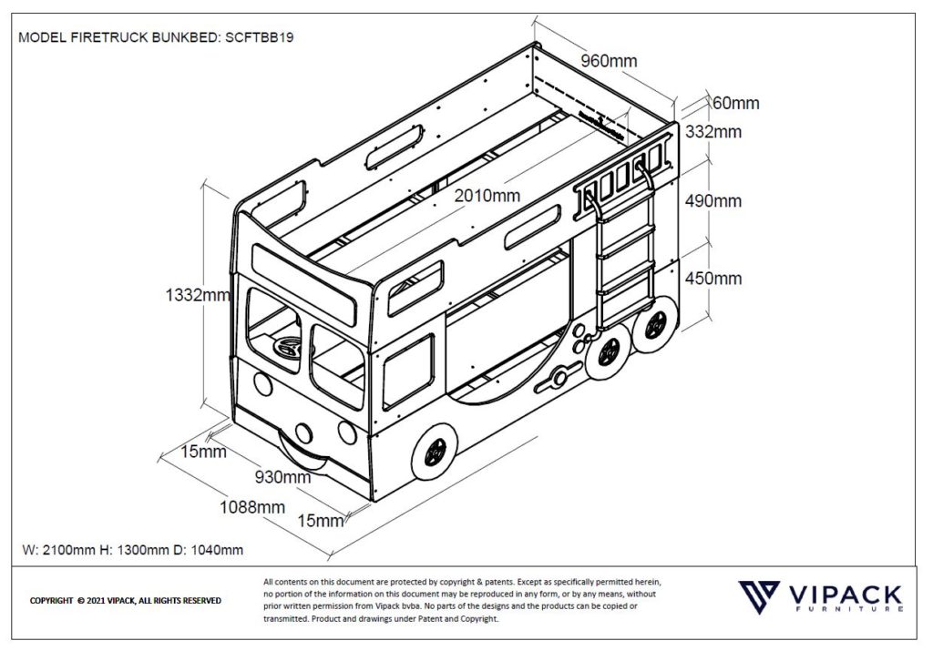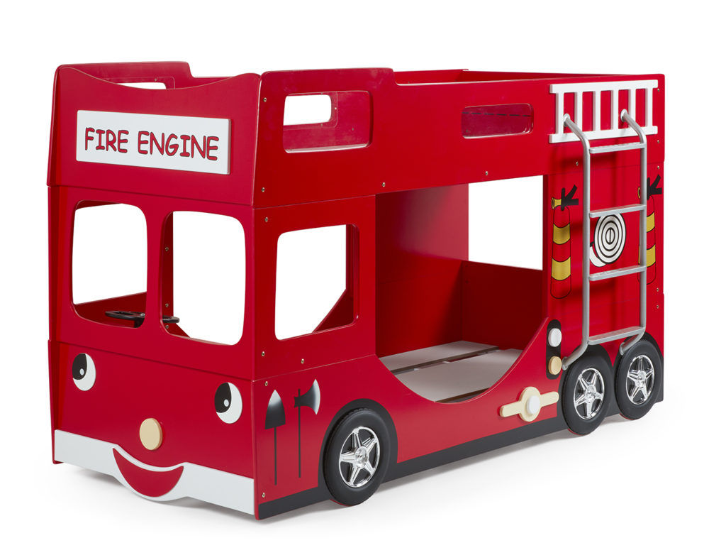 Dit NEW FIRE TRUCK stapelbed is vervaardigd uit rood gelakte MDF. De lattenbodem is inclusief en is geschikt voor een matras van 90x200cm.