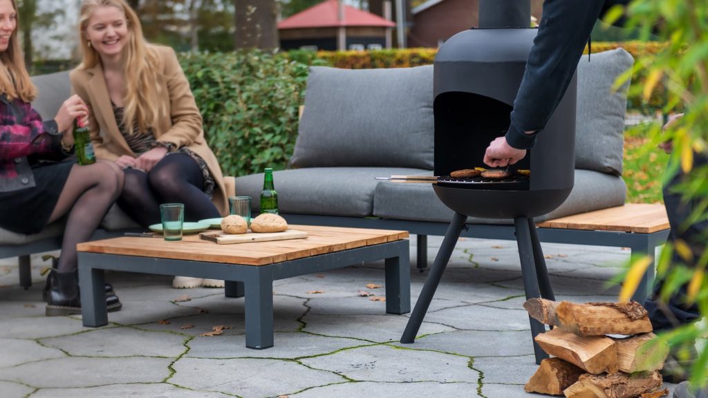 Ruime, tijdloze terrashaard uit het RedFire-assortiment: robuust staal met matzwarte, hittebestendige poedercoating. Duurzaam en stevig, ruim genoeg voor grote houtblokken — multifunctioneel en perfect voor lange, sfeervolle avonden buiten.