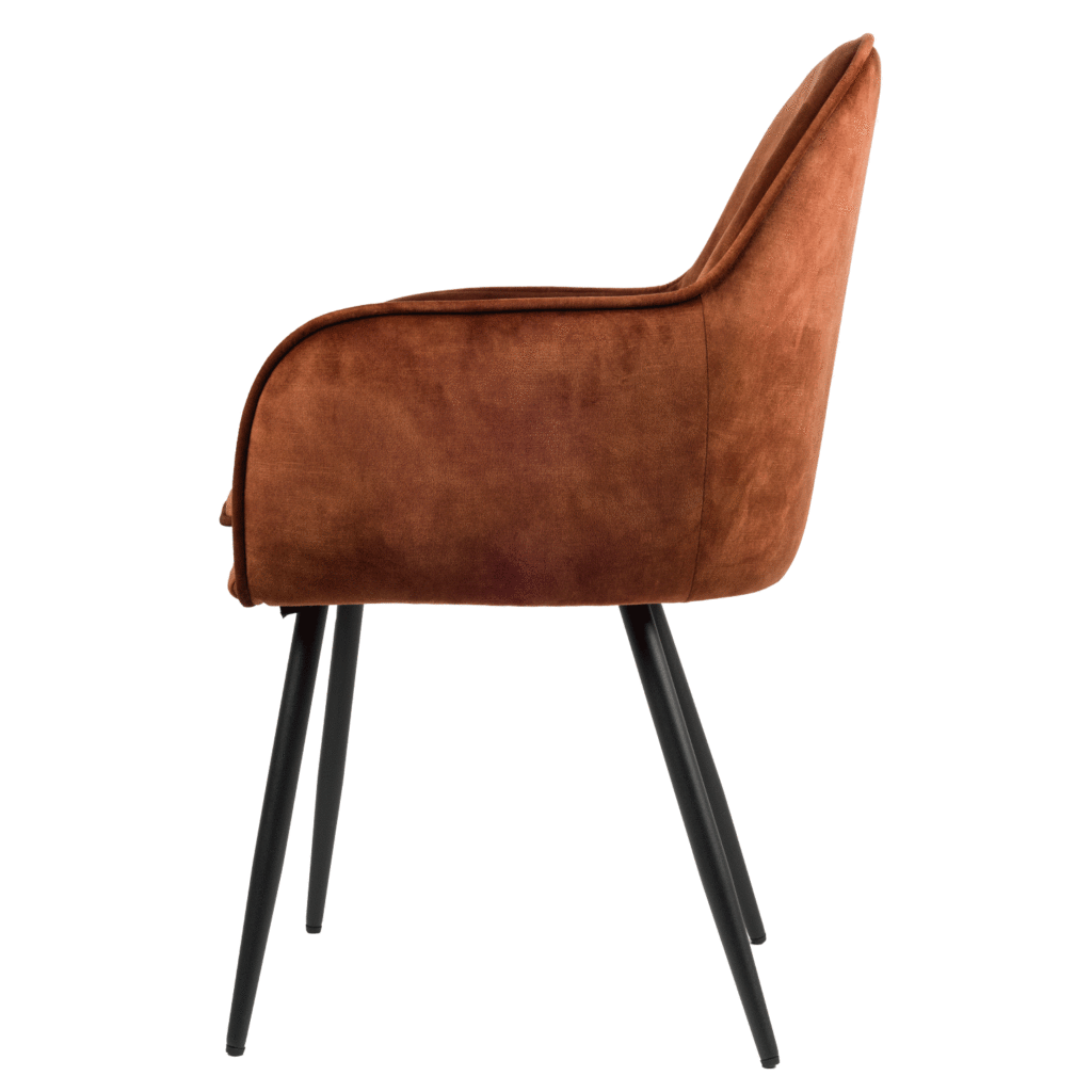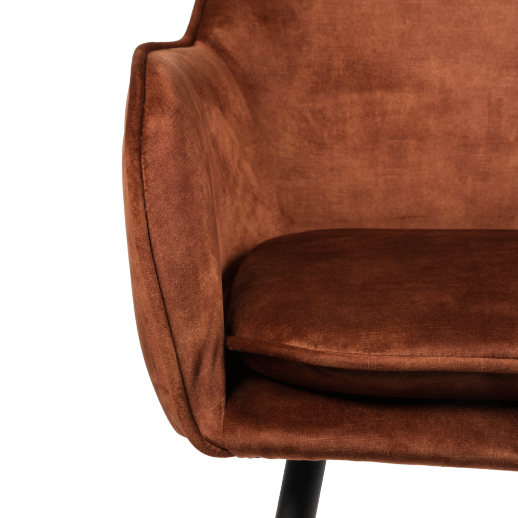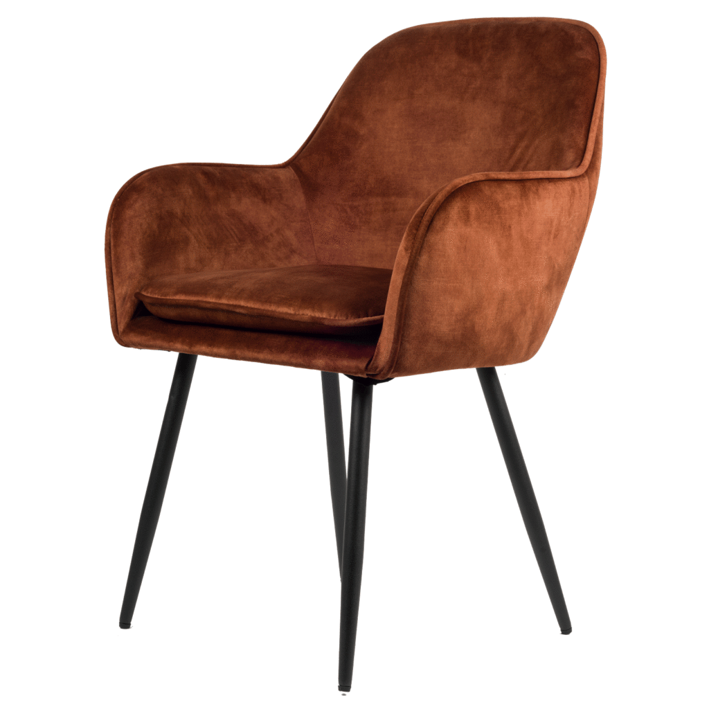 De moderne stijl is voor velen een favoriet vanwege de strakke look en de zachte kleuren, zo ook de Julia stoel. Deze stoel is een prachtexemplaar van de moderne stijl. Het is afgewerkt met een zachte fluwelen stof. De Julia stoel heeft bovendien een afneembaar kussen voor nog meer zitcomfort. De zwarte matte poten dragen mee hun steentje bij om die simpele, elegante look te creëren. De poten zijn ook nog in de hoogte verstelbaar.