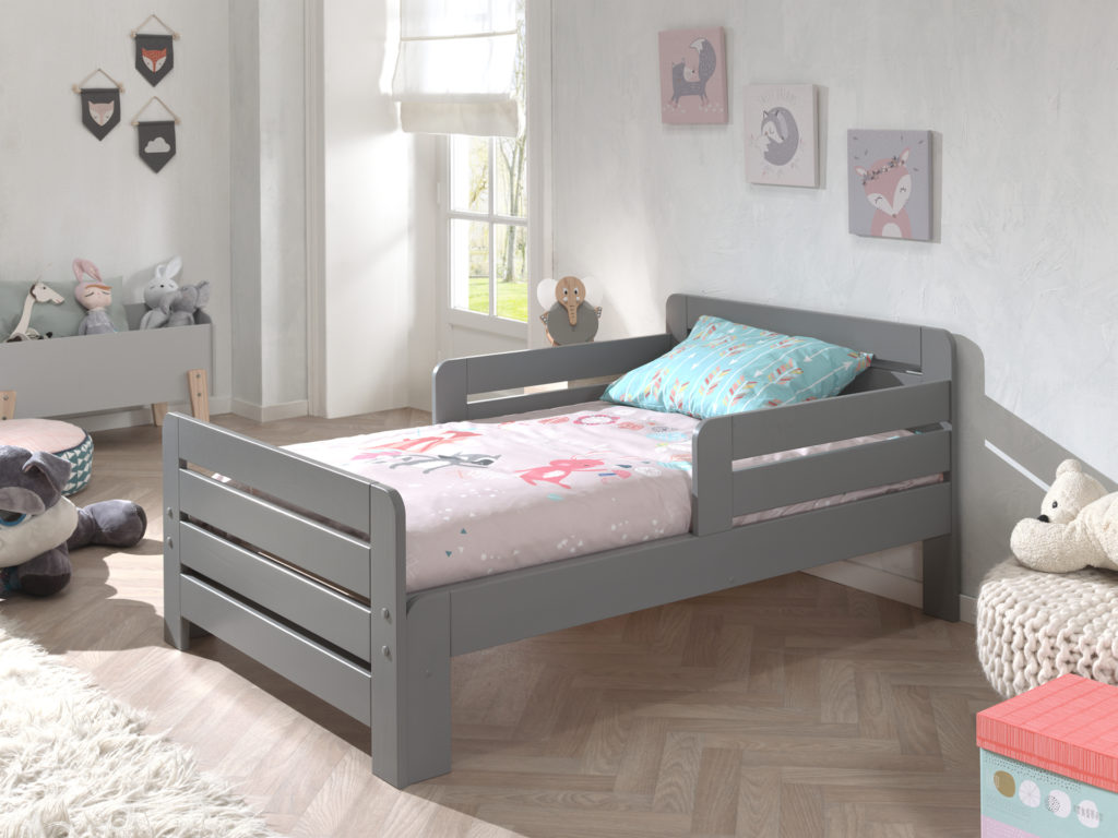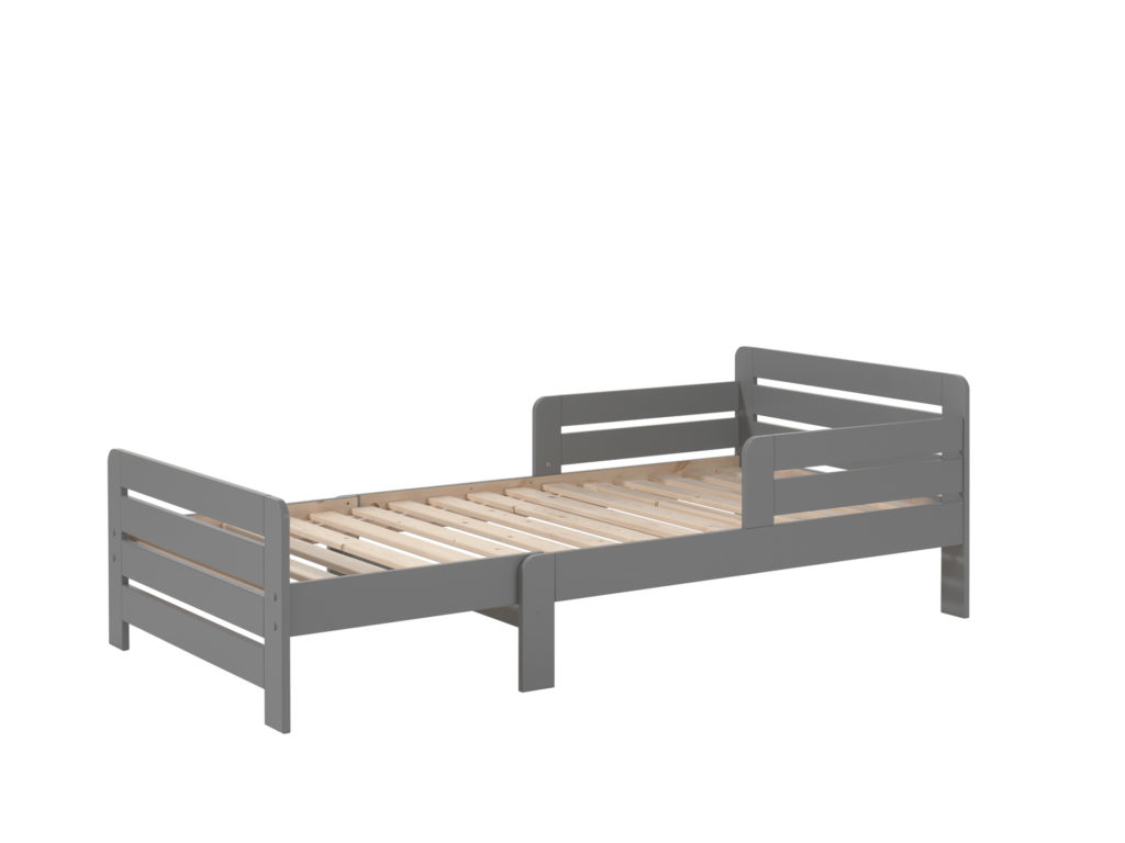 Dit JUMPER uitschuifbed in grijs kan meegroeien met het kind. Het heeft een breedte van 90 cm en kan in verschillende lengtes worden vastgezet: 140, 160 en 200 cm. De lattenbodem is inbegrepen en kan alsook op deze lengtes worden uitgetrokken.