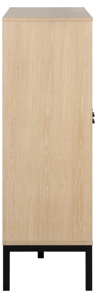 Verrijk je interieur met deze stijlvolle kast met wit geolied eikenhout en zwart gelakt eikenfineer, voor een dynamische touch. Achter 4 deuren met decoratieve lamellen bevinden zich 6 verstelbare planken. Eenvoudige montage dankzij het demontabele ontwerp."