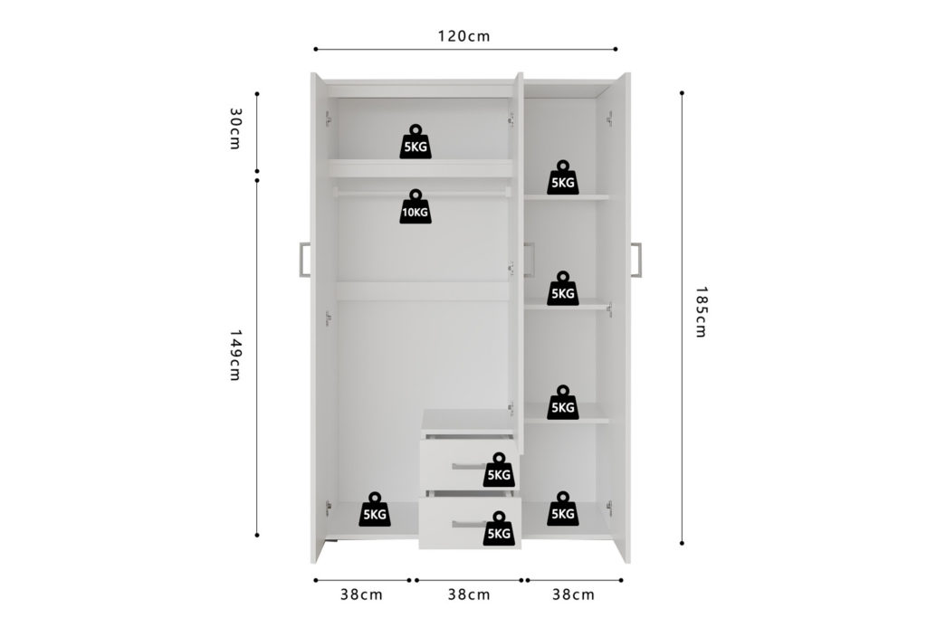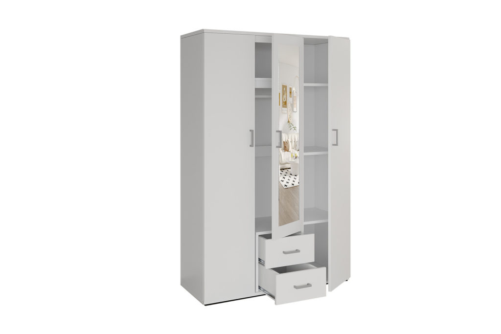 Kledingkast 'Marc' 3 deuren met spiegel Wit