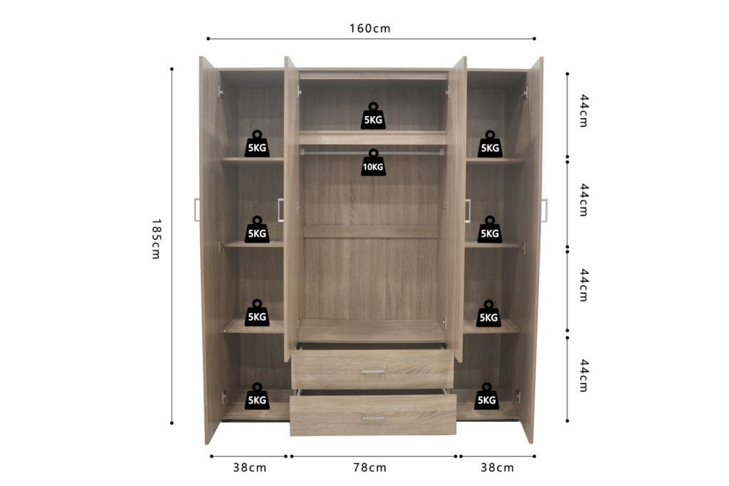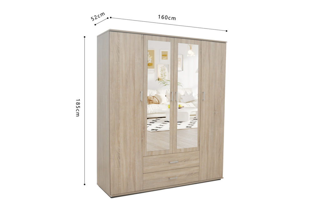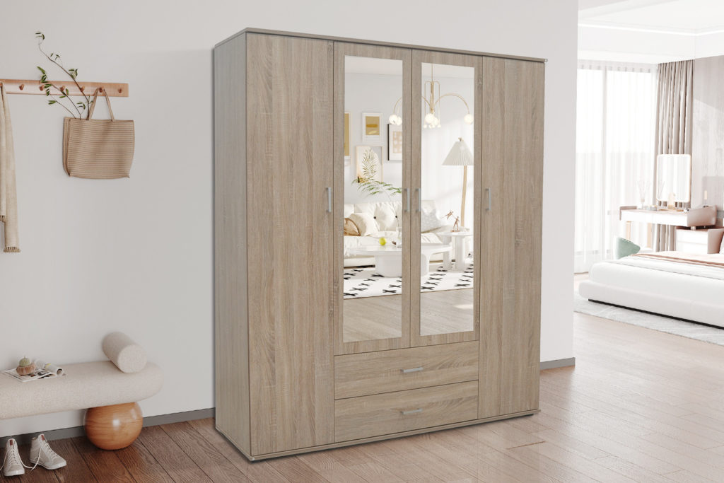 Kledingkast 'Marc' 4 deuren met 2 spiegels Sonoma