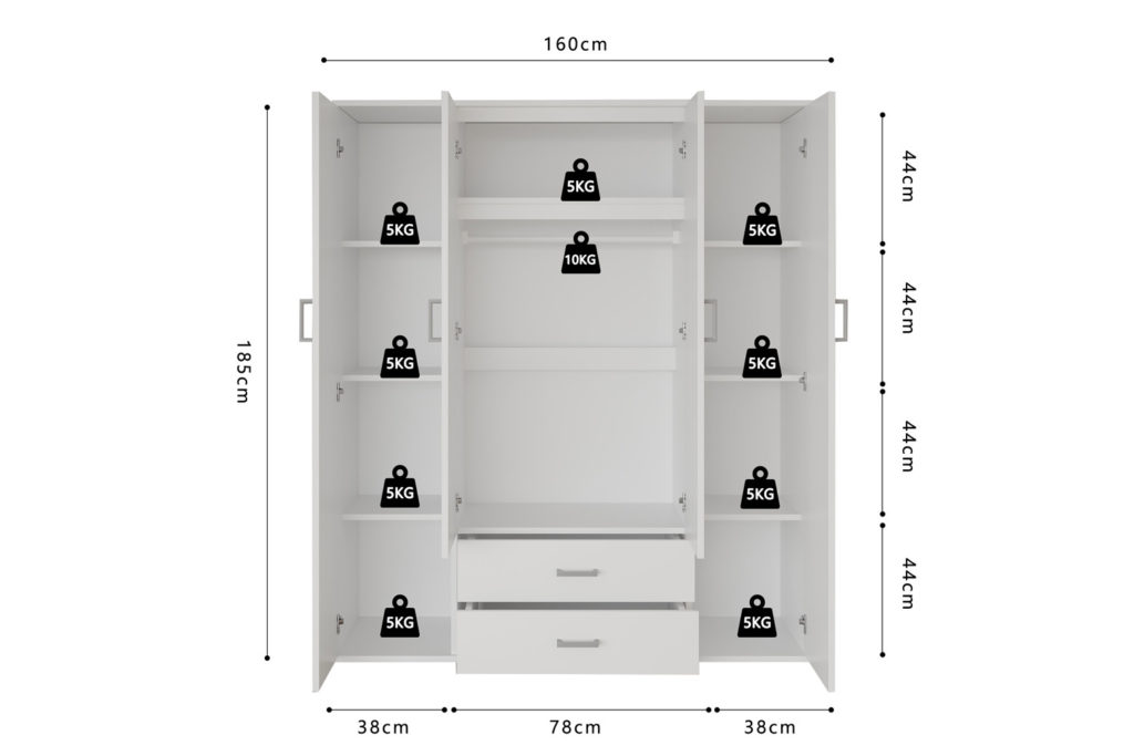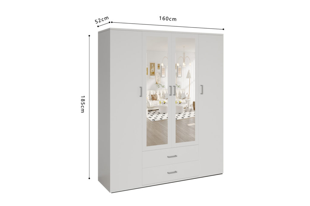 Kledingkast 'Marc' 4 deuren met 2 spiegels Wit