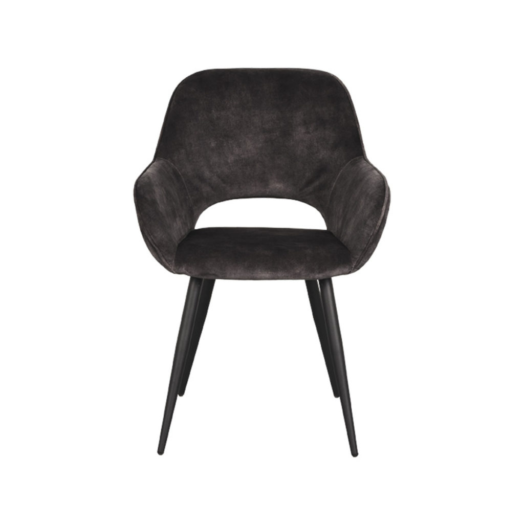 Eetkamerstoel Fer van LABEL51 is een prachtige armstoel uitgevoerd in antraciet velours waar comfort en verfijning samen komen. De mooie zitting met een speelse uitsparing in de rugleuning in combinatie met de fraaie zwarte poten maken Fer tot een topper in zijn segment.