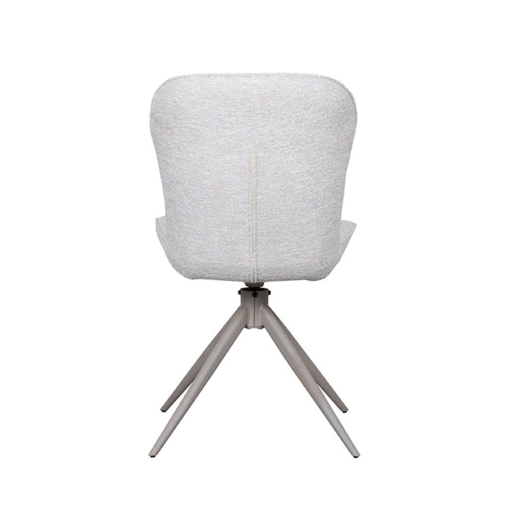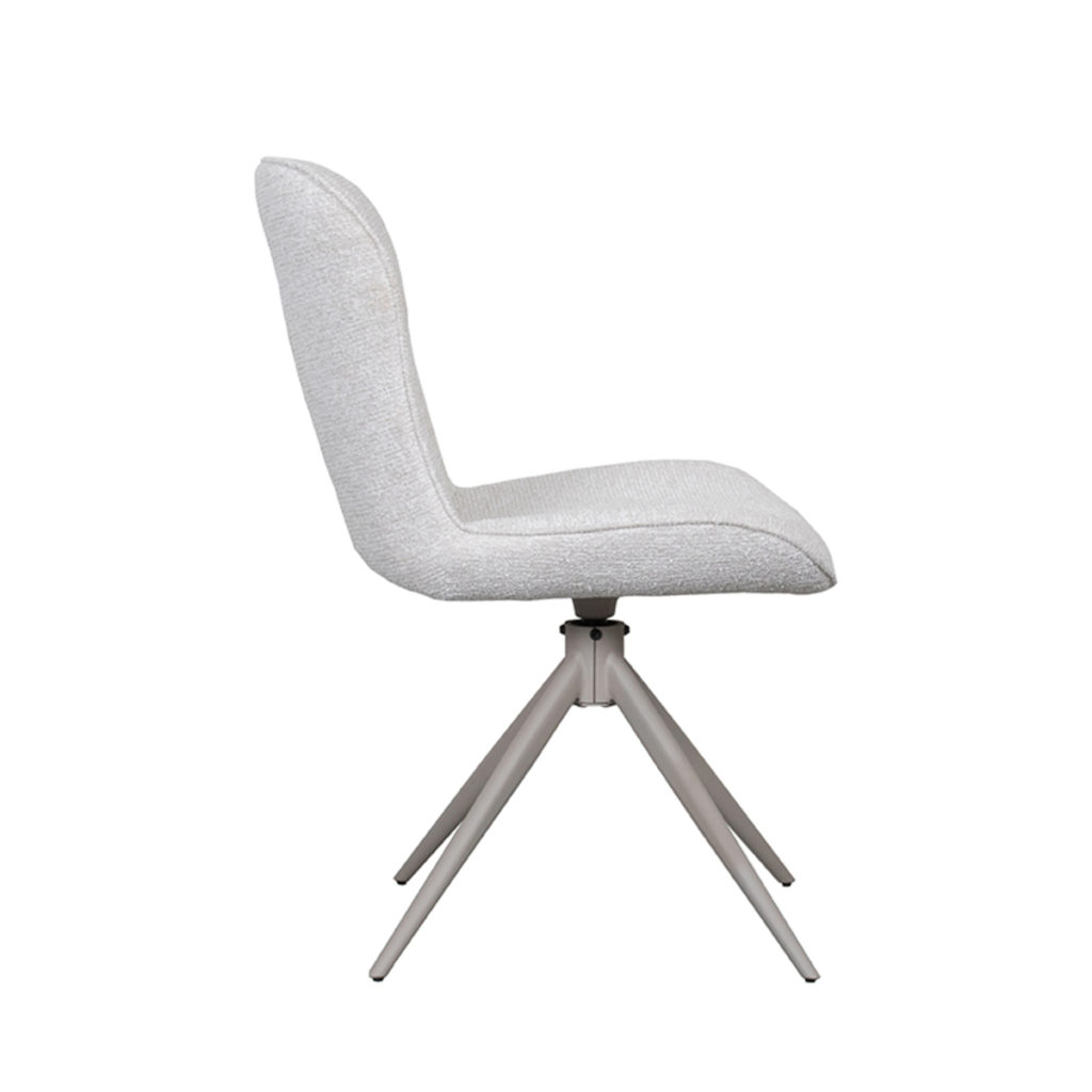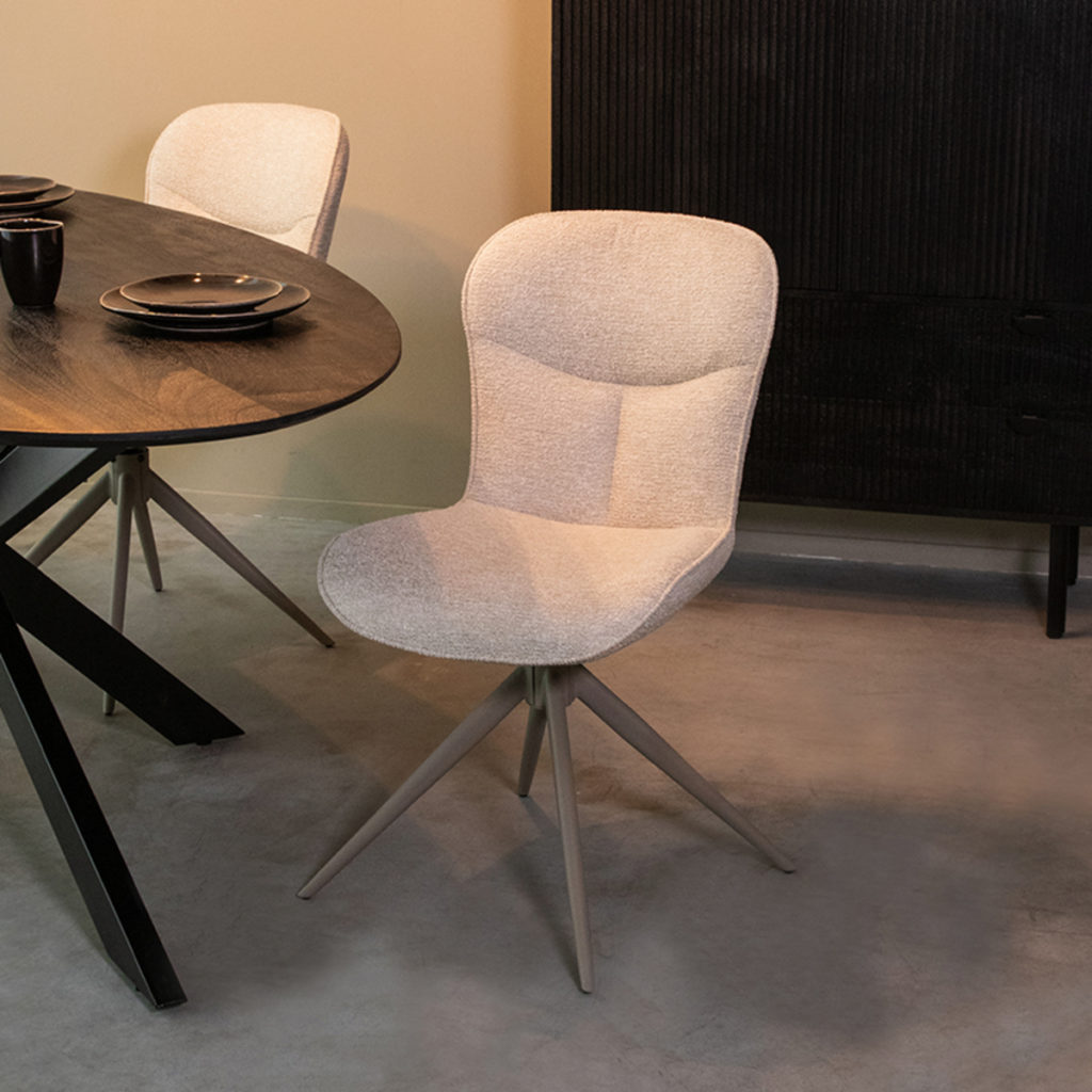 Eetkamerstoel Thorben van LABEL51 is een stijlvolle en moderne stoel die elke eetkamer naar een hoger niveau tilt. De zitting van Thorben is gestoffeerd met Canyon, wat er elegant uit ziet en bovendien makkelijk te onderhouden is doordat deze stof watervast is. De licht gekleurde stof zorgt voor een mooie, contrasterende textuur die warmte toevoegt aan elk interieur.