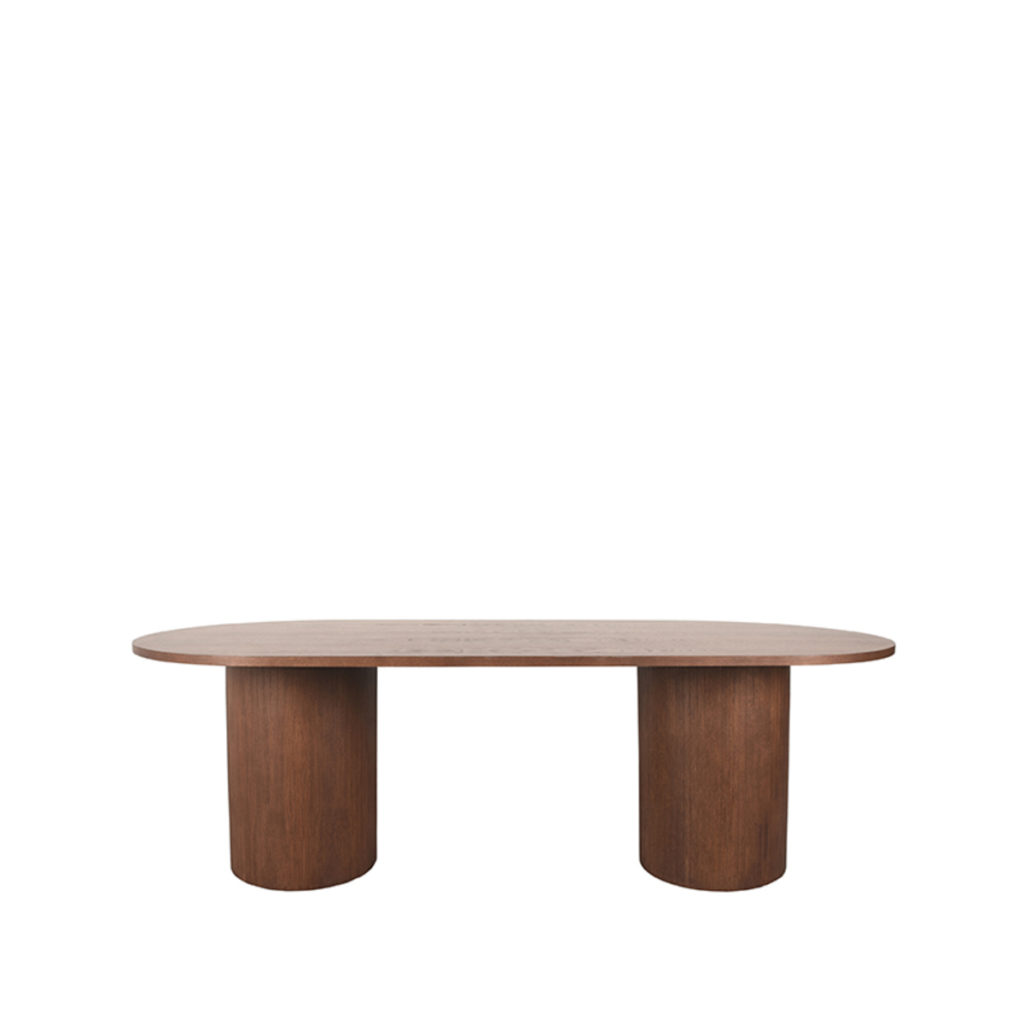Eettafel Oliva van LABEL51 is een trendy meubel uitgevoerd in walnoot eikenfineer. De afgeronde vorm van de tafel maakt het een strak en stijlvol meubel.