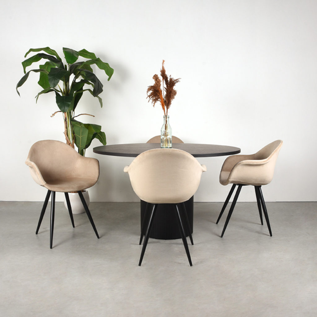 Eettafel Oliva van LABEL51 is een trendy meubel uitgevoerd in zwart eikenfineer. De ronde vorm van de tafel maakt het een strak en stijlvol meubel.