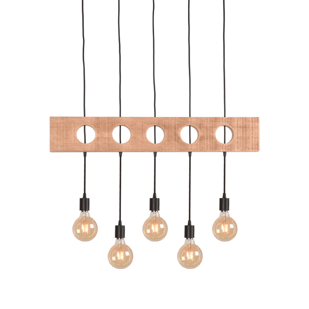Hanglamp Timber van LABEL51 is een speelse lamp met een opvallend en uniek design. Timber biedt ruimte om maar liefst vijf lichtbronnen te plaatsen, voor de maximale lichtopbrengst. De robuuste houten basis gecombineerd met de speelse strijkijzerkoorden in verschillende lengtes maken deze lamp tot een sensationeel item.