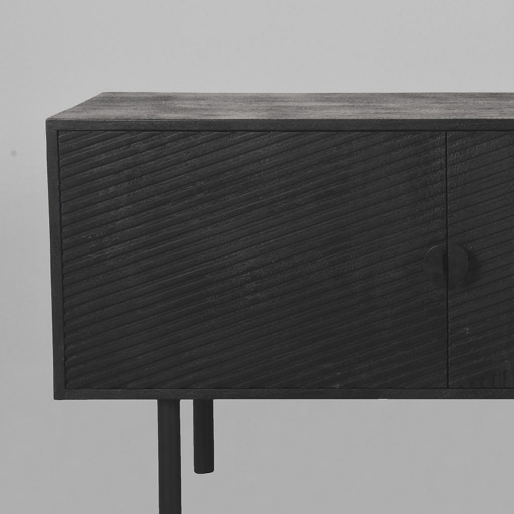 Tv-meubel Cotia van LABEL51 is een speels meubel uitgevoerd in zwart mangohout. Het tv-meubel is door zijn ontwerp niet alleen heel stijlvol, maar ook nog eens handig om veel spullen in op te bergen.
