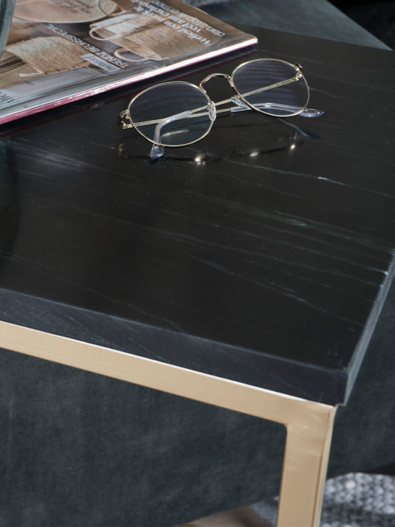 Op zoek naar een luxe en stijlvolle bijzettafel? Dan is bijzettafel Mitch perfect voor in jouw interieur! Het marmeren blad is 2 cm dik en heeft een mooie glas. De combinatie van het gouden metalen frame en het zwart marmeren tafelblad, geeft deze bijzettafel een luxe uitstraling. Het materiaal marmer is een zeer sterke steensoort en daarnaast gemakkelijk schoon te houden. De tafel heeft een open zijde, zodat hij makkelijk over de zitting van de bank of fauteuil geschoven kan worden. Met Mitch heb je je spullen binnen handbereik. Ideaal om te gebruiken voor je laptop of iPad, maar ook voor een kopje koffie, een goed boek of een fijn tijdschrift! Deze bijzettafel wordt gratis thuisbezorgd. Na ontvangst kan je de tafel direct een mooie plek in huis geven. De tafel is namelijk al in elkaar gezet. Mocht de bijzettafel na ontvangt toch geen match zijn met jouw interieur, is het uiteraard mogelijk om deze te retourneren. Afmetingen: 40 x 40 x 54 cm.
