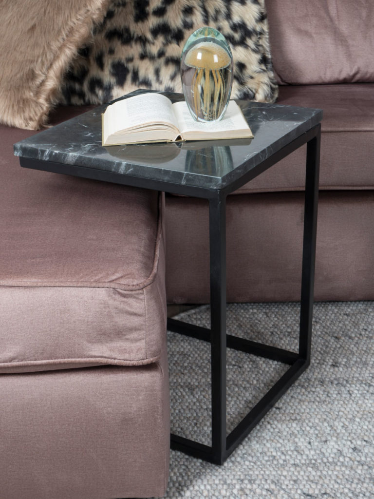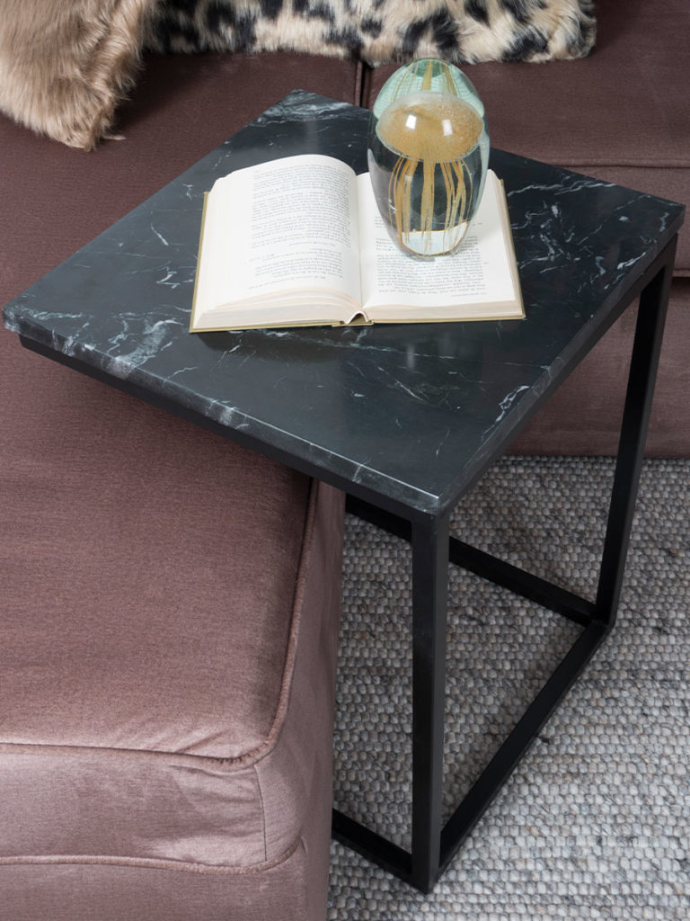 Op zoek naar een luxe en stijlvolle bijzettafel? Dan is bijzettafel Mitch perfect voor in jouw interieur! Het marmeren blad is 2 cm dik en heeft een mooie glas. De combinatie van het zwart metalen frame en het zwart marmeren tafelblad, geeft deze bijzettafel een luxe uitstraling. Het materiaal marmer is een zeer sterke steensoort en daarnaast gemakkelijk schoon te houden. De tafel heeft een open zijde, zodat hij makkelijk over de zitting van de bank of fauteuil geschoven kan worden. Met Mitch heb je je spullen binnen handbereik. Ideaal om te gebruiken voor je laptop of iPad, maar ook voor een kopje koffie, een goed boek of een fijn tijdschrift! Deze bijzettafel wordt gratis thuisbezorgd. Na ontvangst kan je de tafel direct een mooie plek in huis geven. De tafel is namelijk al in elkaar gezet. Mocht de bijzettafel na ontvangt toch geen match zijn met jouw interieur, is het uiteraard mogelijk om deze te retourneren. Afmetingen: 40 x 40 x 54 cm.