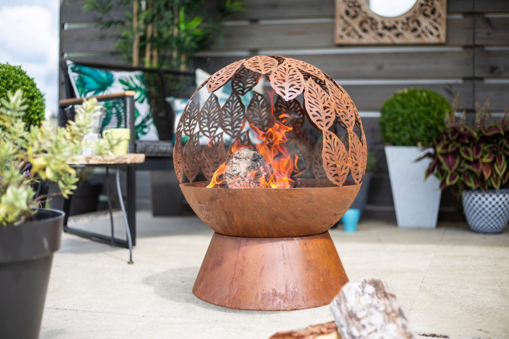 De La Hacienda Leaves Globe zorgt met zijn kunstzinnige design niet alleen voor wat extra flair, maar ook voor de aangename warmte van een traditionele vuurkorf. Deze stalen vuurbal vormt een prachtig middelpunt in uw tuin, waarbij het bladmotief een prachtige effect heeft op de bewegende vlammen.