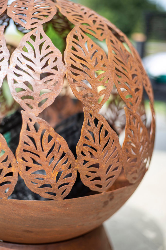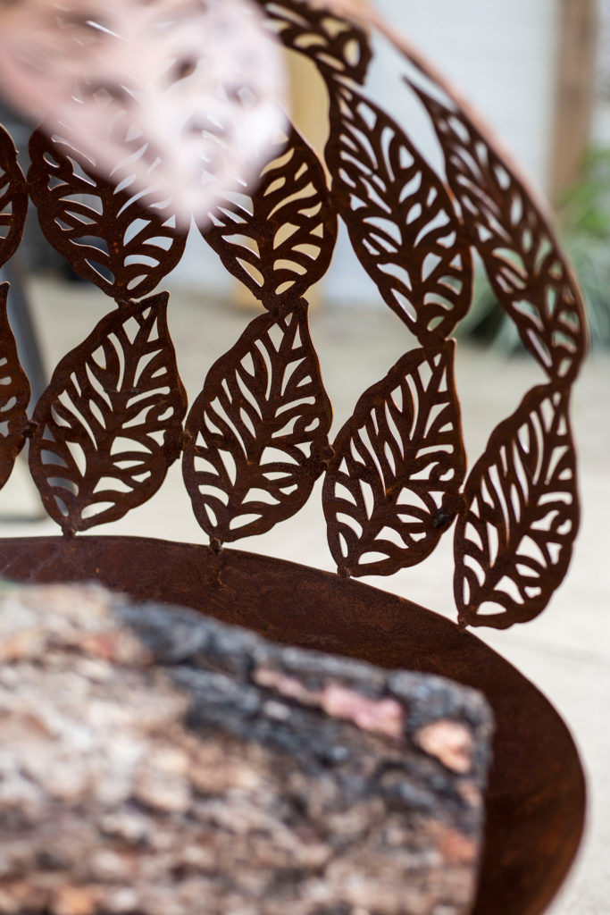 De La Hacienda Leaves is gemaakt van geroest staal en voorzien van een prachtig lasergesneden ontwerp. Het geoxideerde materiaal zorgt voor een mooie verweerde afwerking die past in zowel de moderne als klassieke tuin. Door zijn ronde vorm heeft u van alle kanten zicht op het sfeervolle haardvuur. De vuurbal heeft een diameter van maar liefst 50 cm en ligt op een stabiele gietijzeren voet waardoor deze veilig is te gebruiken.