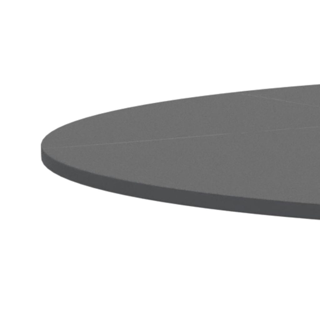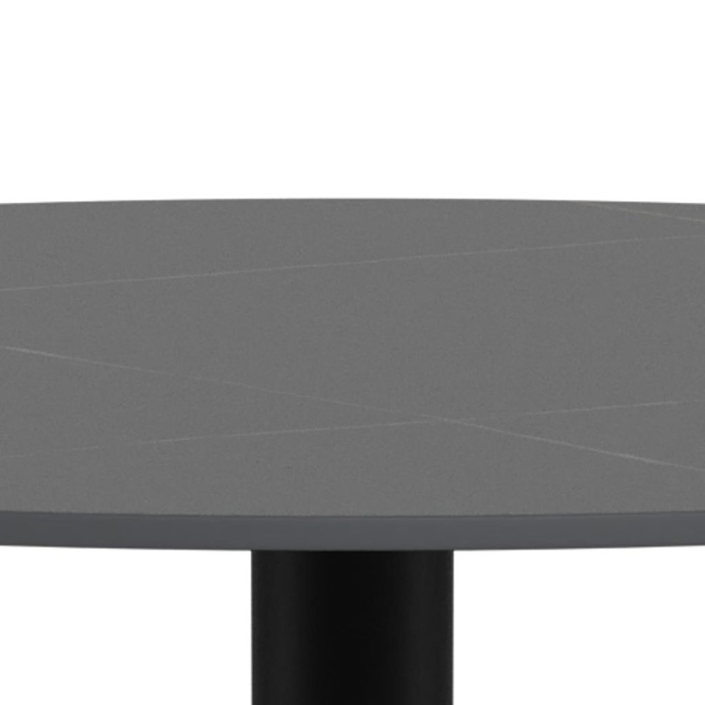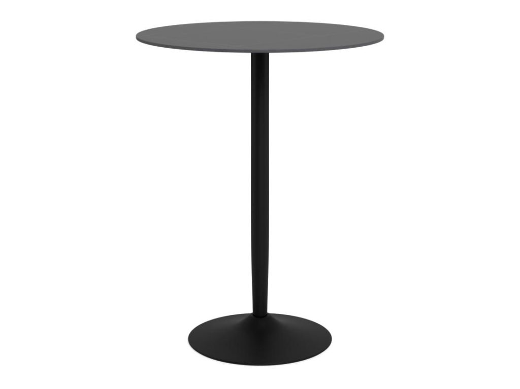 Modern Malta ronde bartafel met een matzwart Grantham keramisch blad en een trompetvoet van matzwart gepoedercoat staal, Ø80x105 cm.