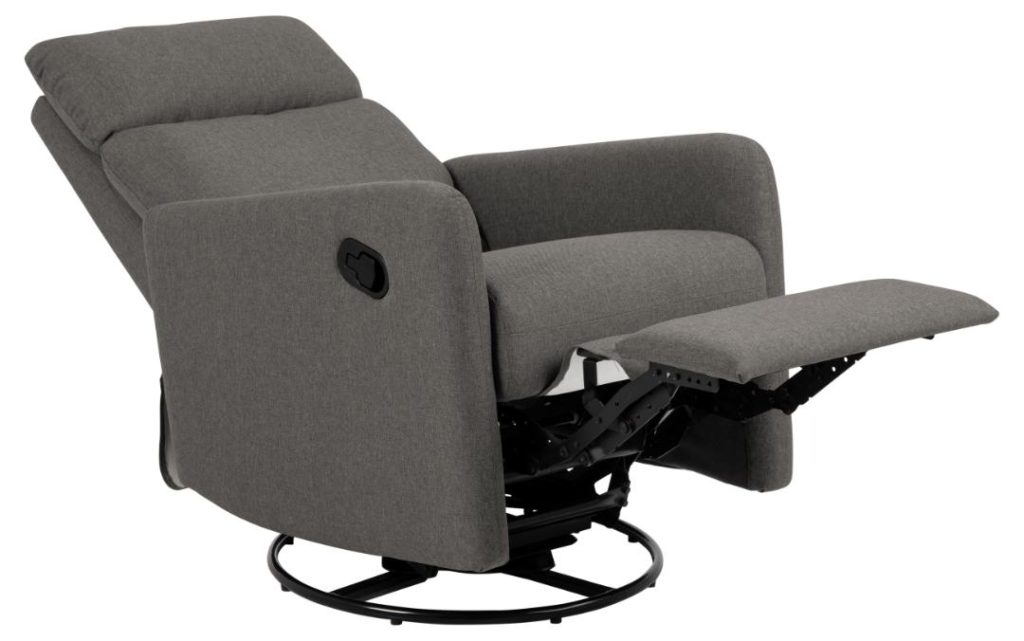 Deze grijze relaxfauteuil biedt ultiem comfort met padding, pocketveren, handmatige kantelfunctie, schommel- en draaifuncties. Gedeeltelijke montage nodig. Gestoffeerd met duurzame stof op een stevige stalen basis. Trakteer uzelf op ontspanning in stijl.