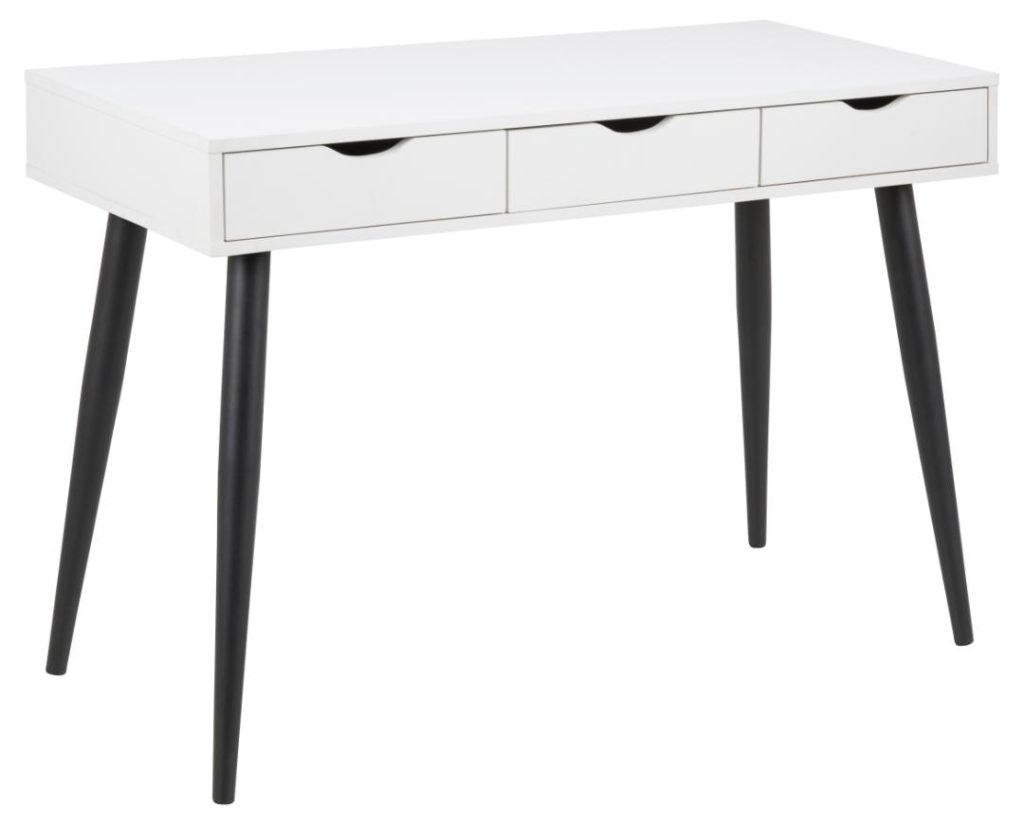 Dit strakke bureau heeft een modern en praktisch ontwerp, met een ruim tafelblad, drie laden voor gemakkelijke organisatie en duurzaam materiaal voor weinig onderhoud. Voorzien van metalen glijders voor soepel openen. Montage vereist.