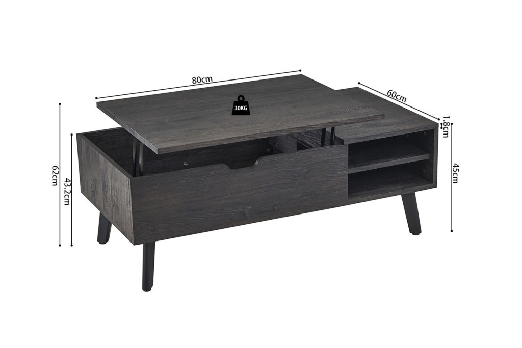 NIEUW - Salontafel 'Justine' met opklapbare top in decor donkerbruin