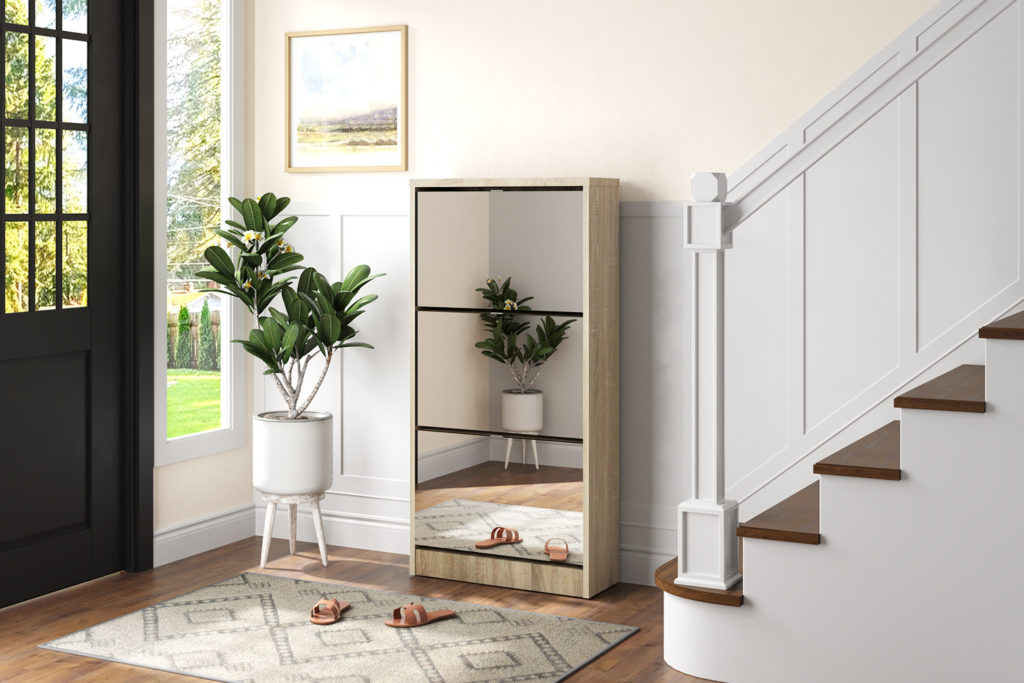 NIEUW - Schoenenkast 'Mex' Spiegel 3 laden Decor Sonoma