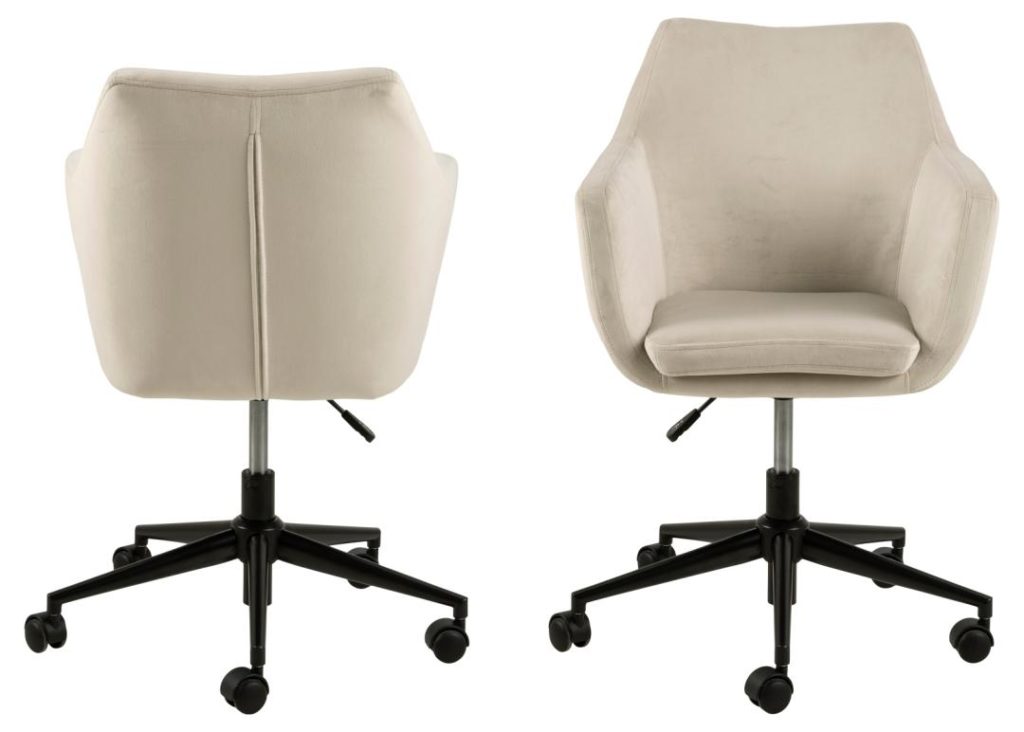 Stoel met armleuningen Nora, stof Vic zand A80, 5-sterren voet van mat zwart gepoedercoat staal met remwielen, gasveer, draaibaar en rits.