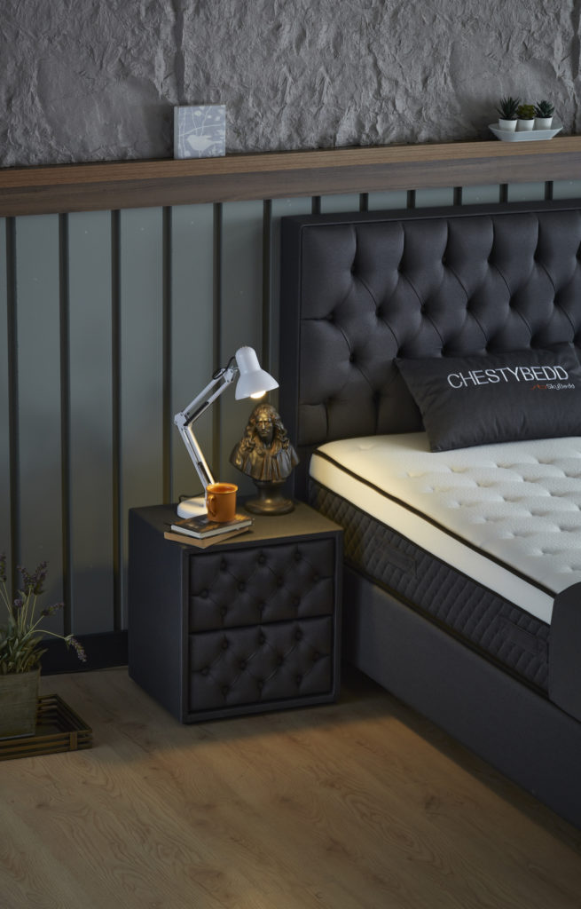 Opbergboxspring Chestybedd Antraciet 90x200 - Eenpersoons