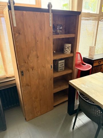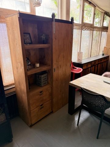 • Barnkast industrieel extra behandeld met brownwash, in de afmetingen 120x40x190 cm (lxbxh)