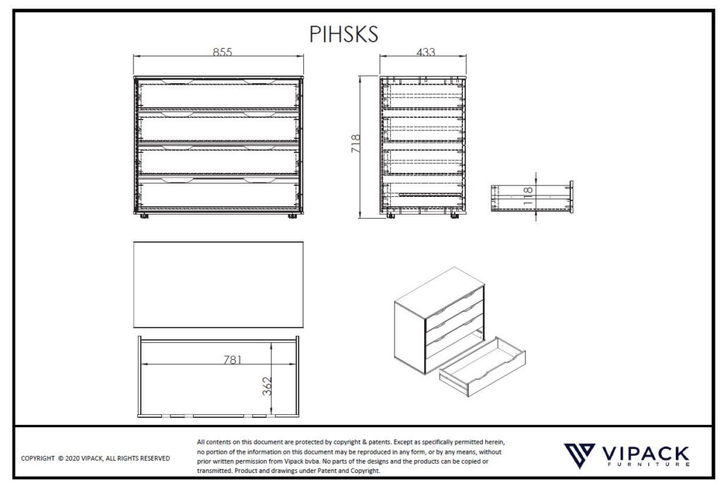 De commode met 4 lades van de PINO collectie is volledig vervaardigd uit massief grenen hout en is wit gelakt. Deze commode kan zowel separaat gebruikt worden als in combinatie met de PINO (half-)hoogslaper.
