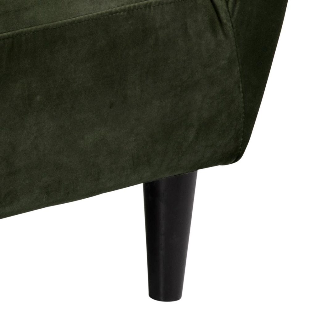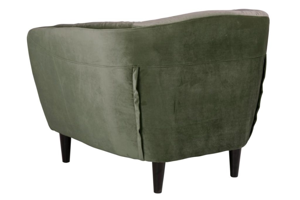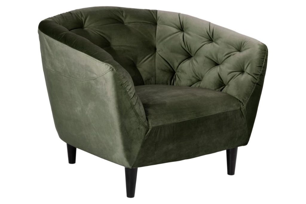 Deze stijlvolle 1-zitsbank in groen fluweel met knopen en pocketveren biedt een klassieke esthetiek. Het comfort wordt verhoogd door het vrouwelijke ontwerp en de taps toelopende zwarte poten. Eenvoudig te monteren.