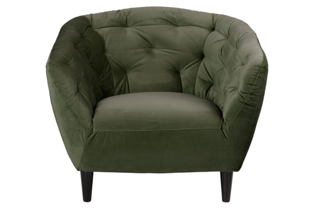 Upgrade uw ruimte met de stijlvolle Ria 1-zitsbank in Vic-stof bosgroen. Voorzien van pocketvering en stiknaden voor extra comfort. Afmetingen: 97x84x78 cm. Onderstel in zwart NC gelakt rubberhout.