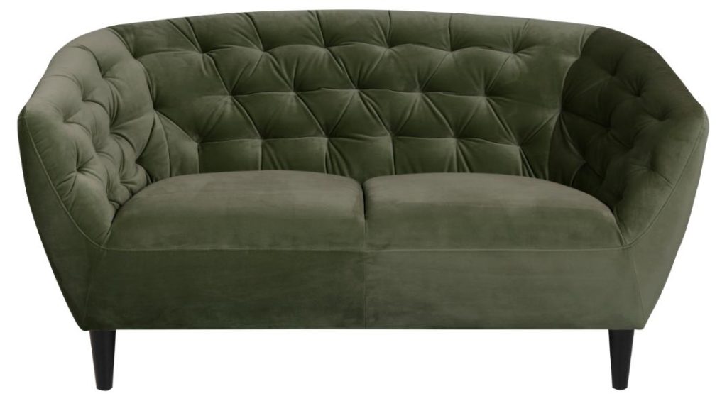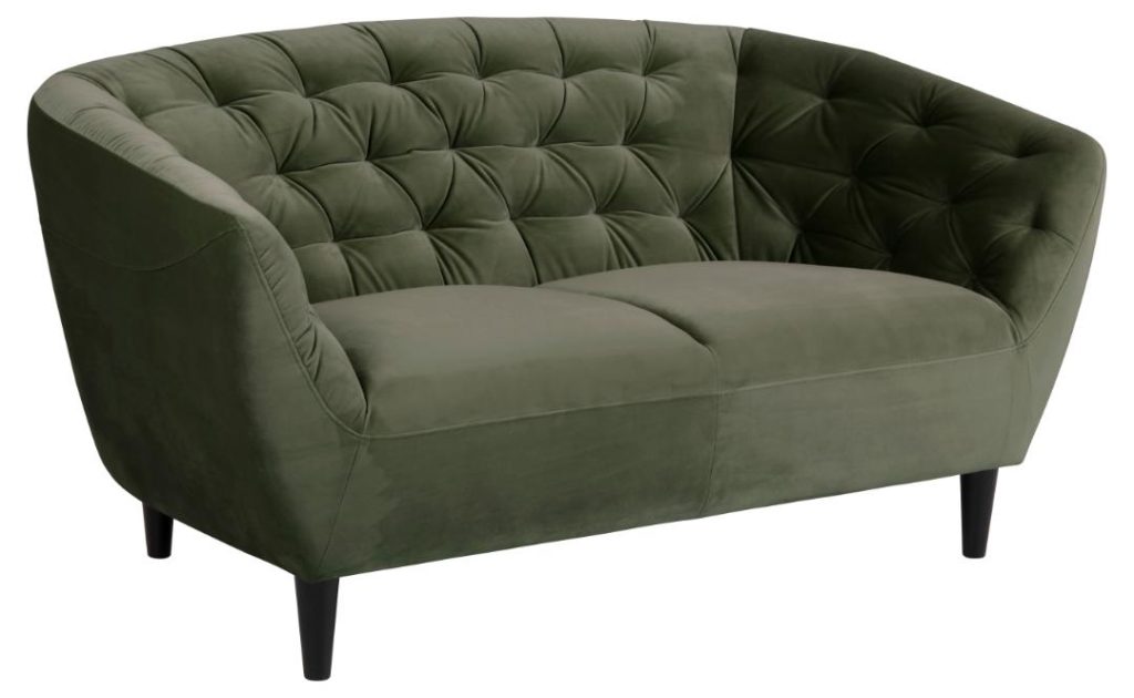 Verrijk je ruimte met de stijlvolle Ria 2-zitsbank in Vic-stof bosgroen. Voorzien van een stevige zwart gelakte rubberhouten basis, pocketveren en elegante knopen. Afmetingen: 150x84x78 cm. Ervaar comfort en verfijning in één meubelstuk.