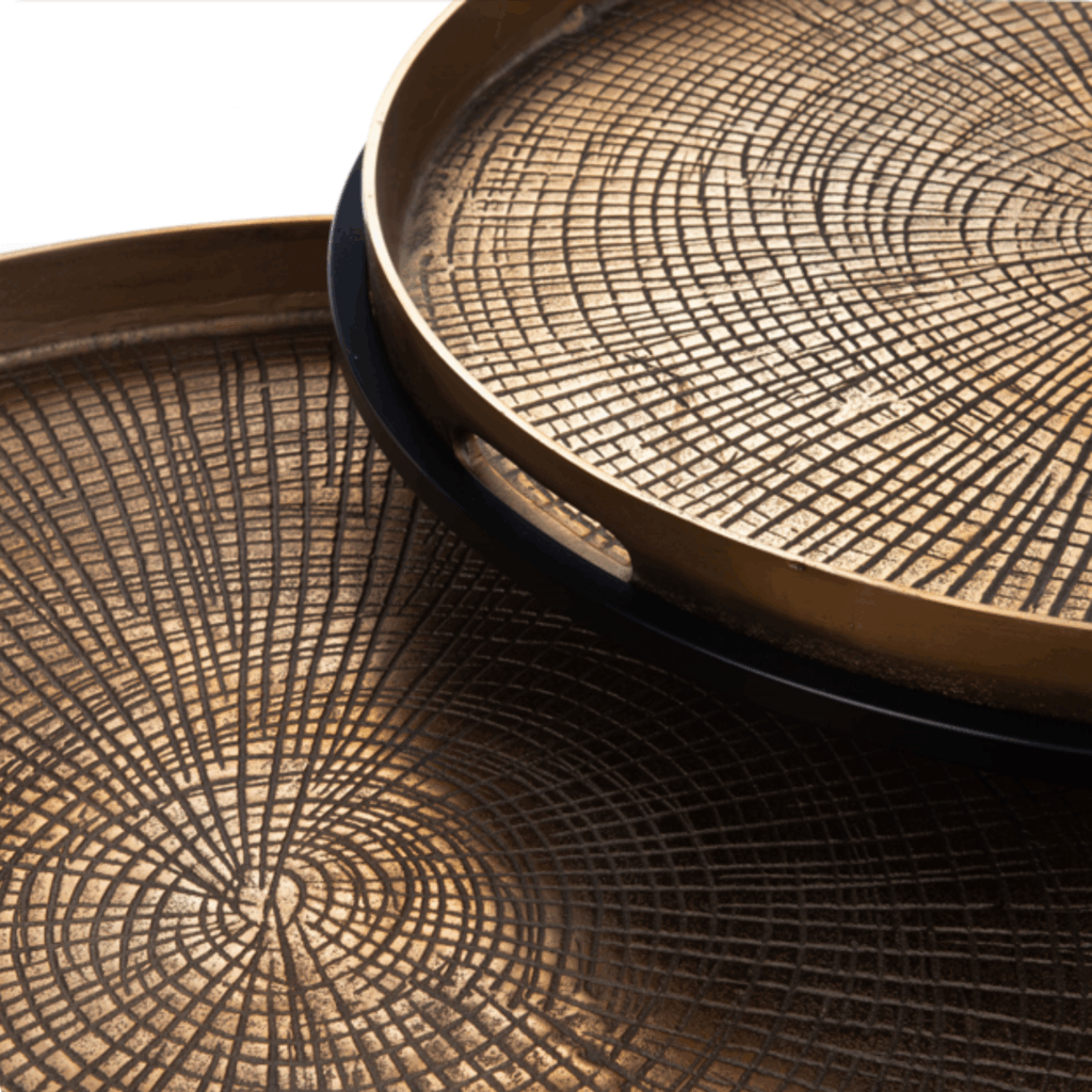 De salontafelset Julie bestaat uit twee tafels met een elegant en praktisch ontwerp. De tafelbladen zijn gemaakt van aluminium met een stijlvolle koper kleur, wat een warme en luxe uitstraling geeft. Deze set van twee tafels is ideaal voor zowel kleinere als grotere ruimtes.