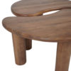 De set van twee salontafels Lina heeft een uniek niervormig ontwerp. De drie ronde, robuuste poten bieden zowel stabiliteit als charme, waardoor de tafels niet alleen functioneel zijn, maar ook een echte blikvanger vormen. Plaats de tafels in een Yin-Yang-opstelling voor een harmonieus effect, of zet ze verder uit elkaar voor een speelse, ruimtelijke indeling. Met afmetingen van 70 x 70 x 38 cm zijn ze veelzijdig en flexibel en ideaal als bijzettafels, salontafels of decoratieve accenten in je woonkamer, slaapkamer of kantoor. Onderhoud Mangohout heeft in het algemeen weinig onderhoud nodig en is behandeld tegen vocht en vlekken. Gebruik een lichtvochtige doek om de tafels schoon te maken. Wij geven echter geen garantie op het eventueel ontstaan van oneffenheden. Om beschadigingen, vlekken en kringen te voorkomen, raden wij aan om onderzetters en/of viltjes te gebruiken. Het mangohout is afgewerkt met een beschermlaag. Om het hout te beschermen én mooi en levendig te houden raden wij aan om het hout 2 tot 4 keer per jaar te behandelen met Elite Polish.