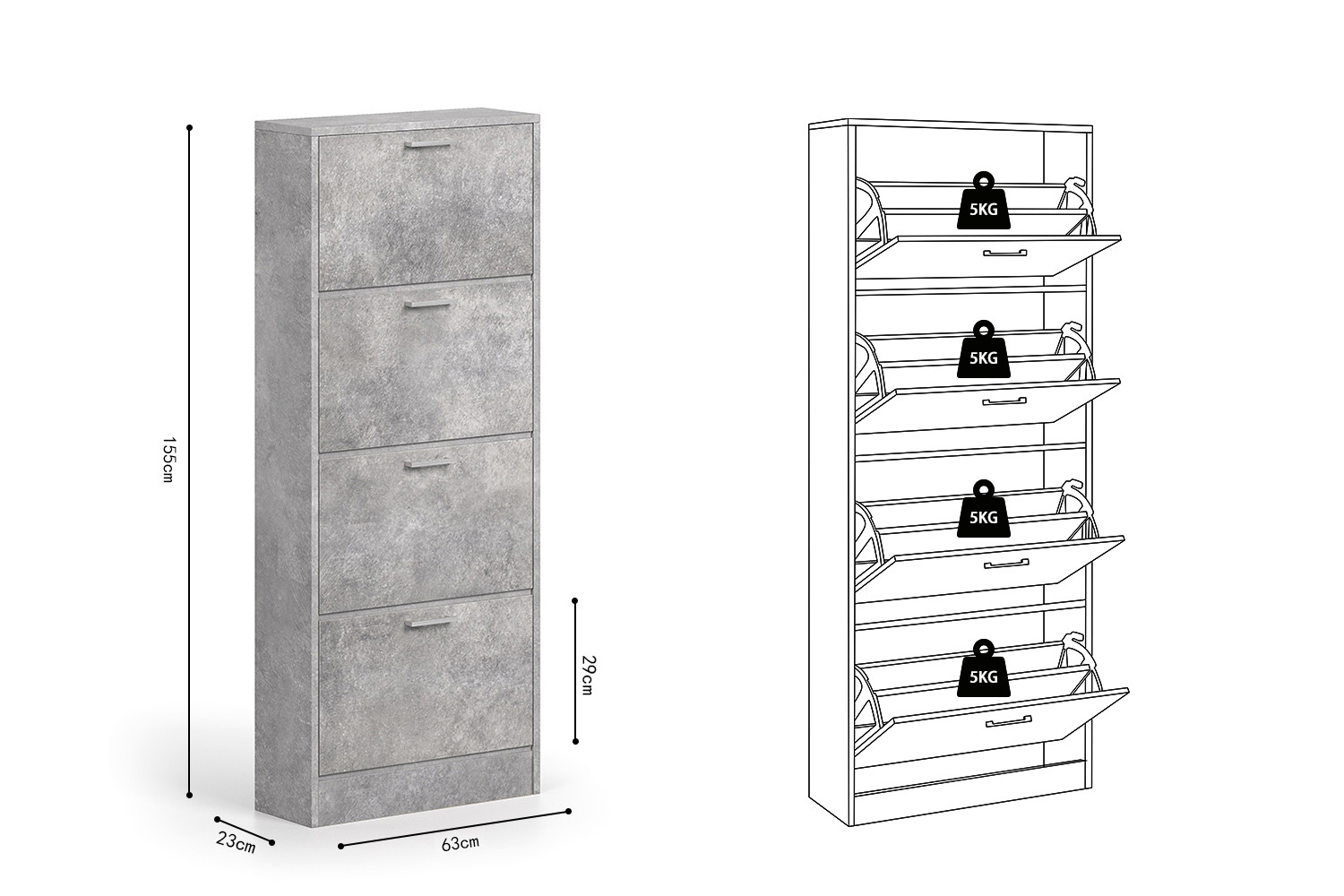 • Schoenenkast 'Carini' 4 laden Beton (1c)